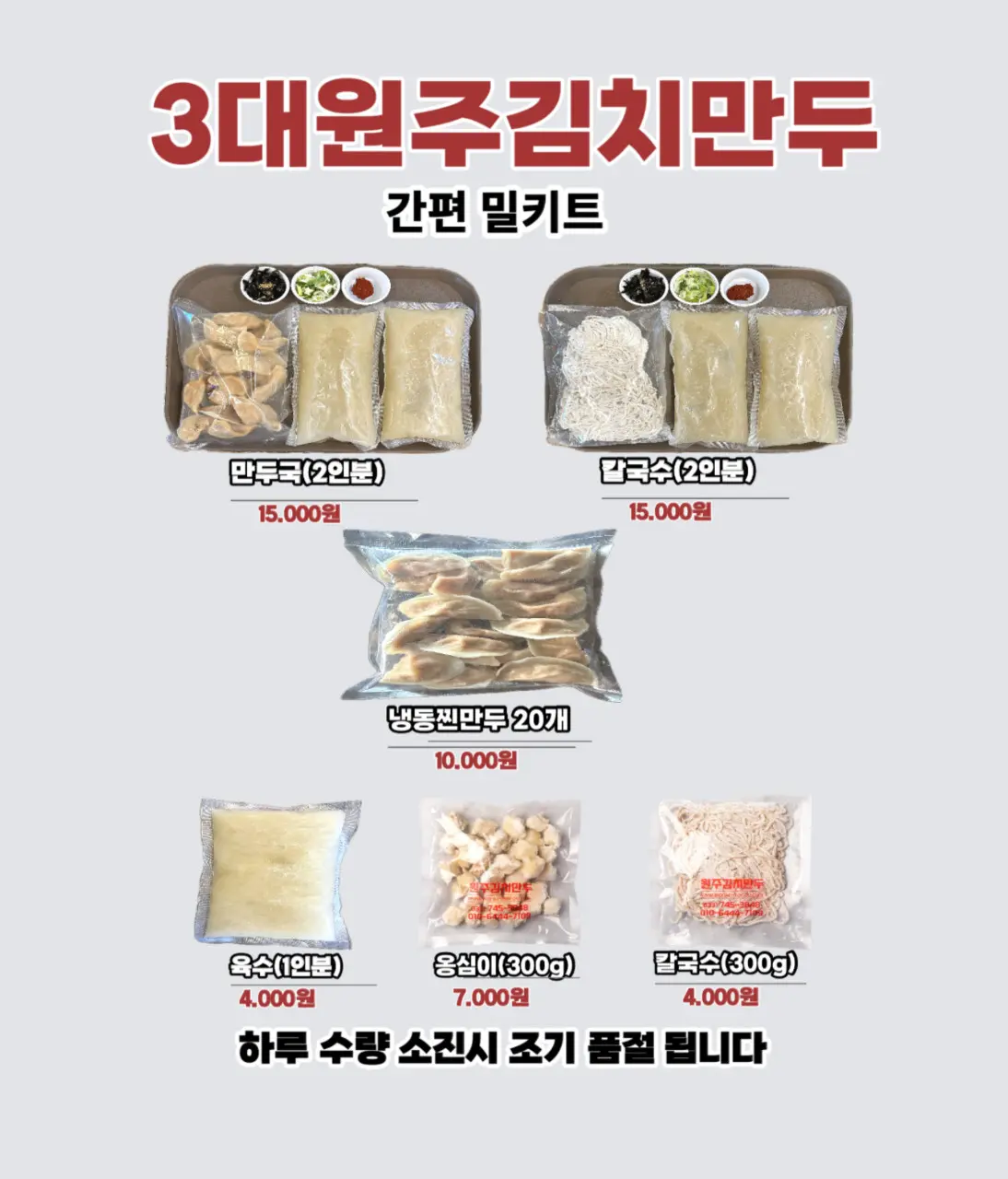 아래 메뉴들은 방송 메뉴 포함, 3대원주김치만두의 대표 메뉴들이에요.