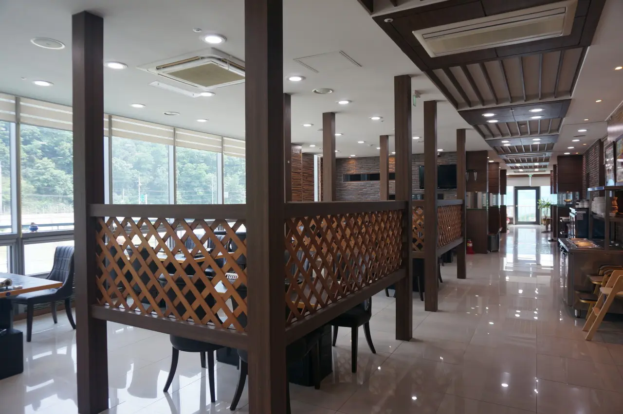 주차장은 식당 앞과 부지 전체를 포함해 약 1,000평 규모로, 승용차는 물론 대형 버스도 여유 있게 주차할 수 있을 정도로 넉넉해요. 홍천IC와도 가깝고 도로변에 넓게 자리 잡고 있어 주차 스트레스 없이 방문할 수 있다는 점이 큰 장점이랍니다.