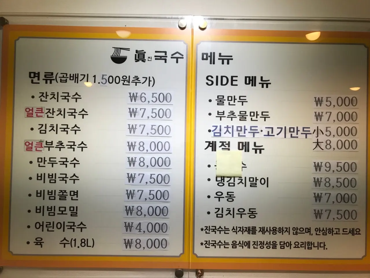 진국수 메뉴