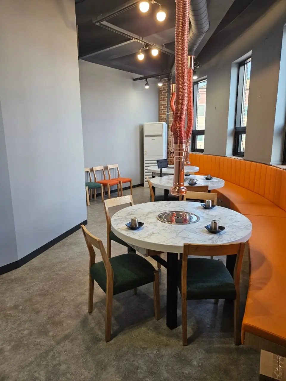 • 1층: 정육점 & 홀 식당, 테이블 좌석 위주로 누구나 편하게 이용 가능.