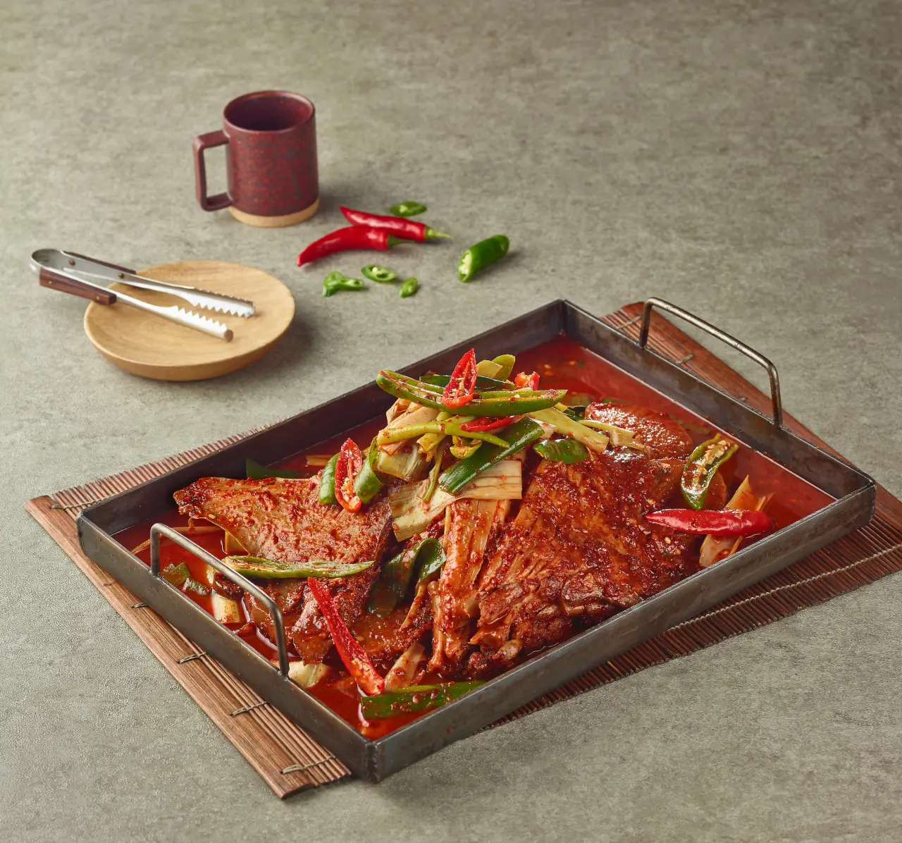- 모둠생선조림(철판 생선찜): 코다리·가오리·가자미·불볼락 네 가지 생선을 한 번에 즐기는 시그니처 메뉴예요.