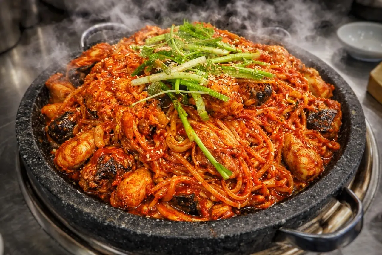 방송에서도 돌판 위에서 지글지글 끓는 해물아구찜을 보고 모두가 감탄했어요. ‘힐링의 맛’이라는 수식어가 딱 어울리는 비주얼이었답니다.