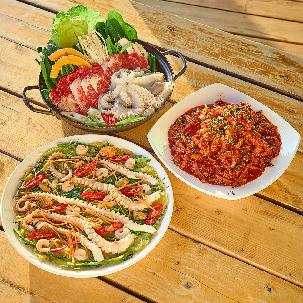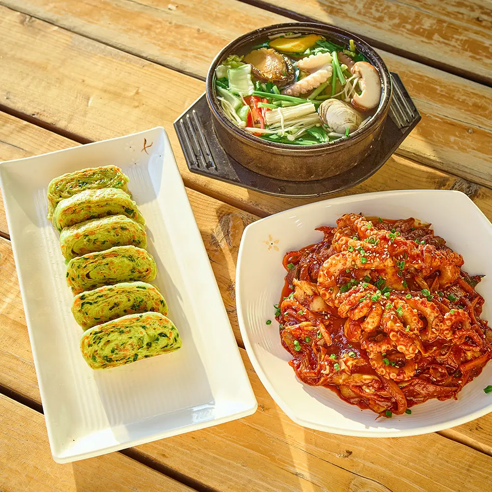 푸짐한한상세트 98,000원 산낙지볶음+연포탕+해물바삭전 세트