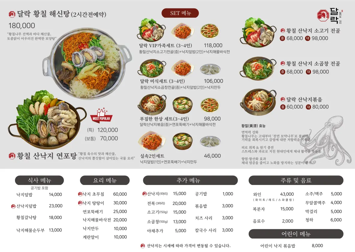 달리도낙지 달락 대표메뉴 한눈에 보기