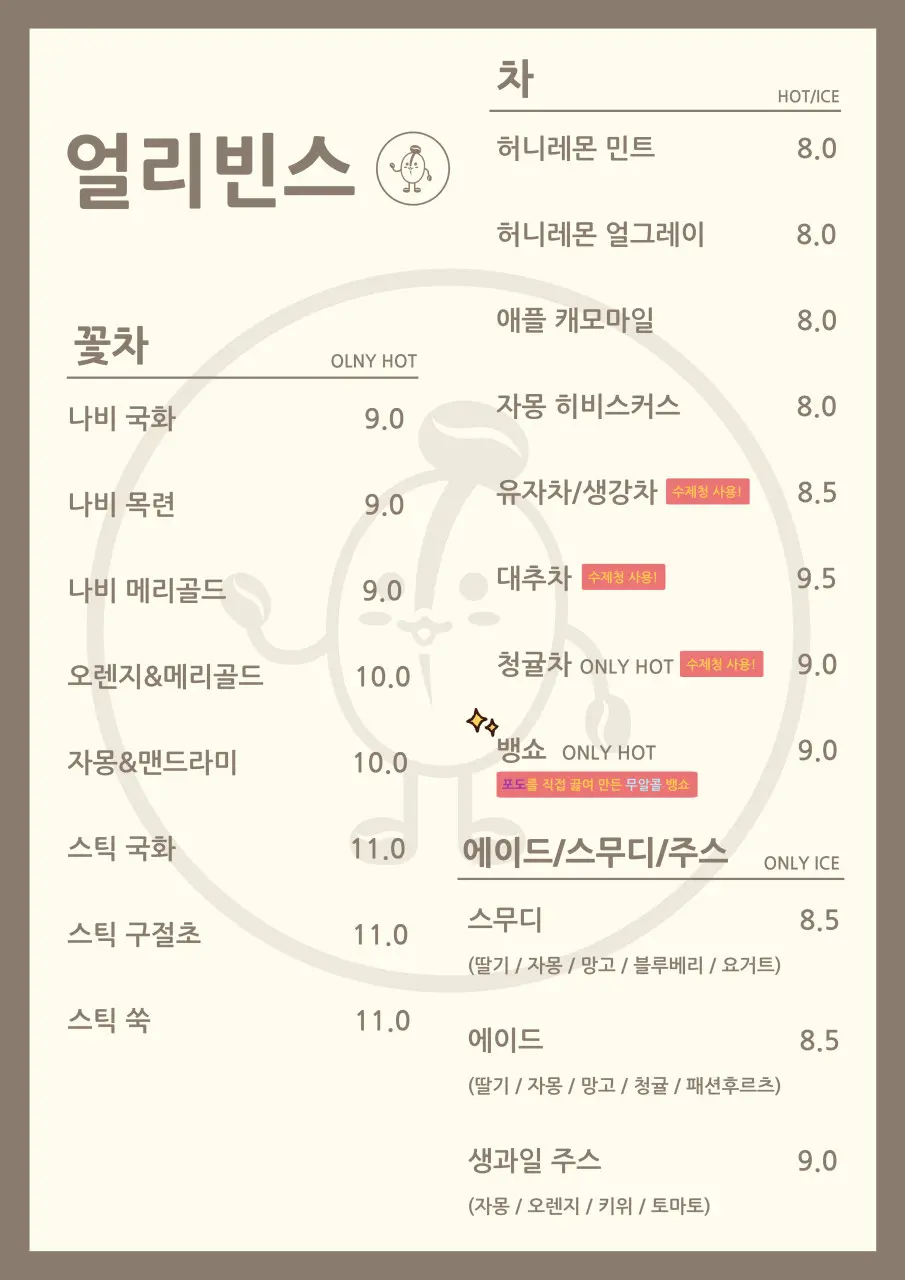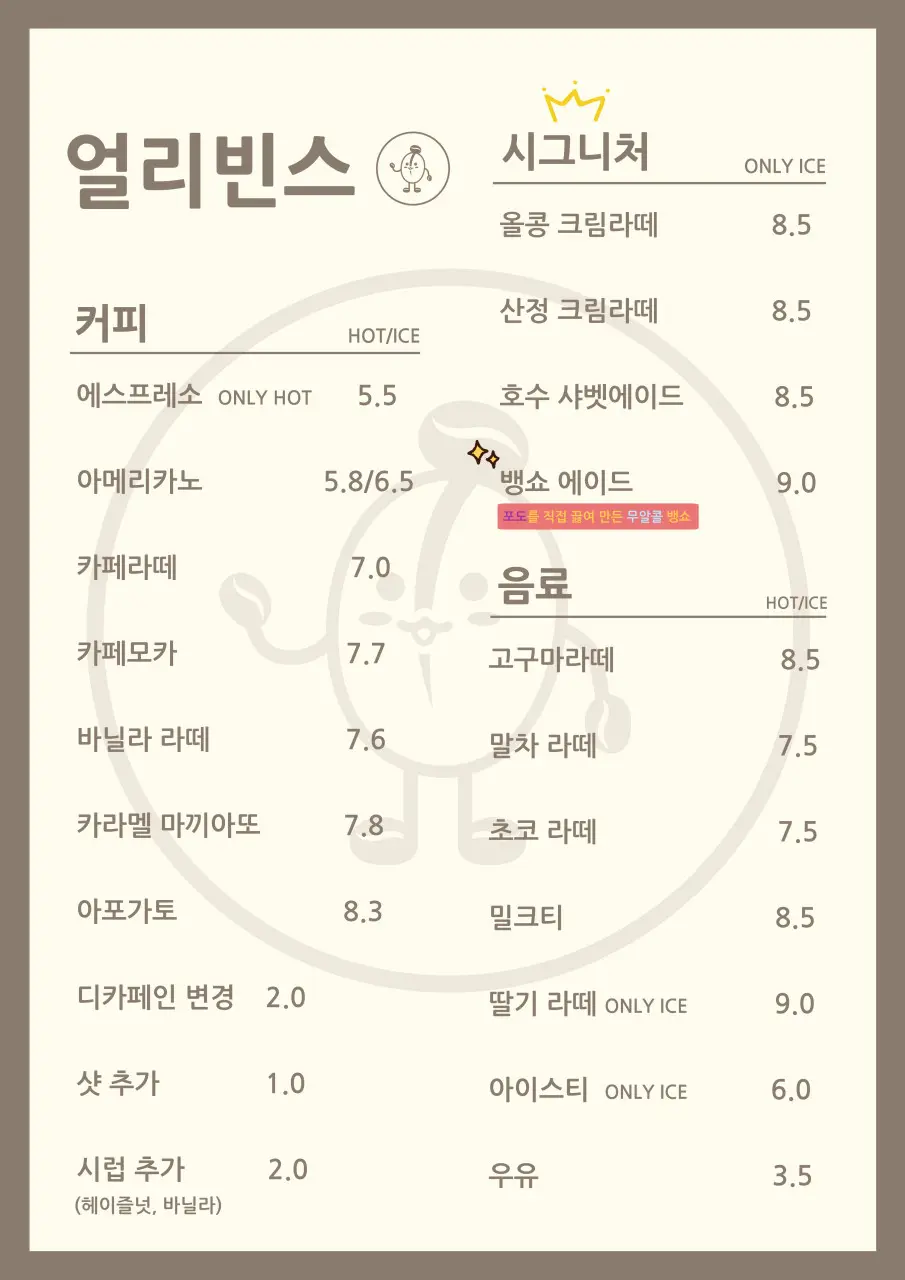 얼리빈스 메뉴 정보