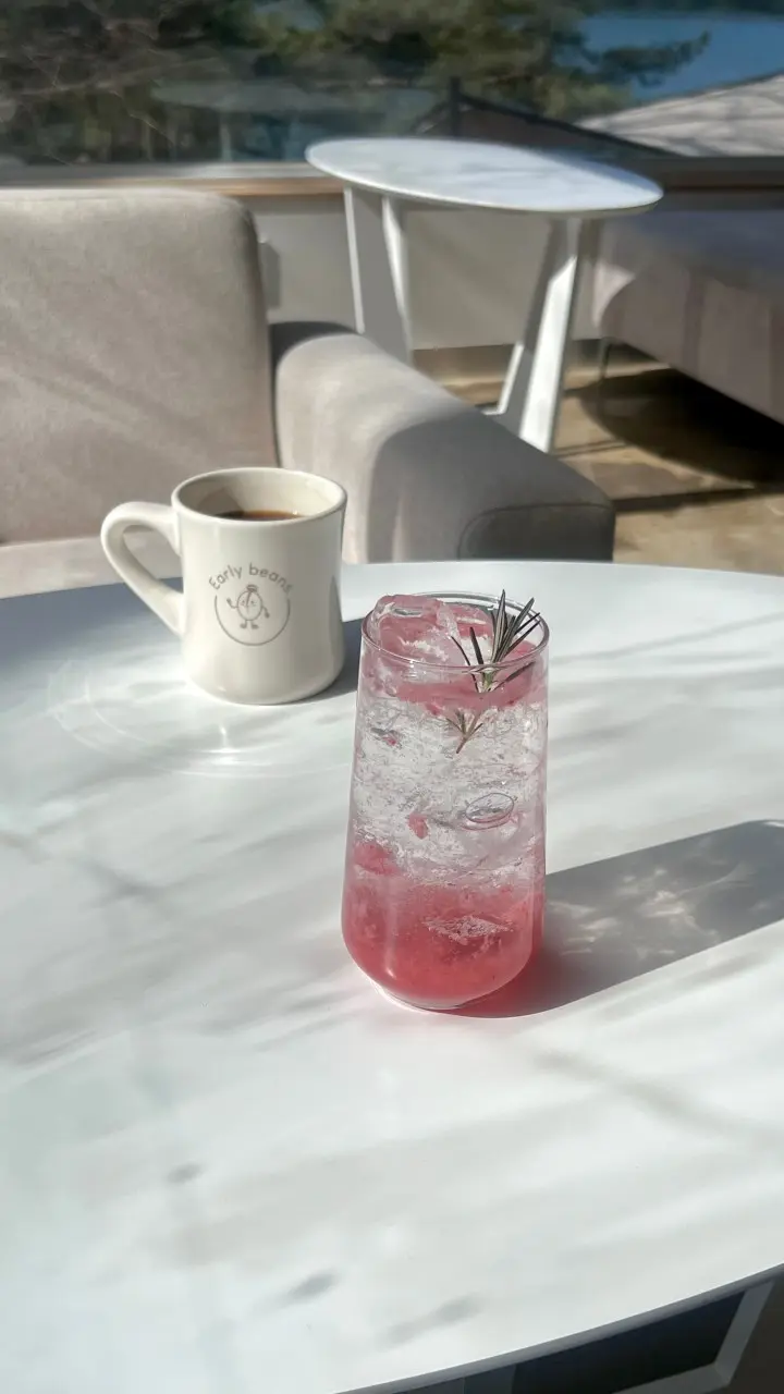 얼리빈스는 3층 규모의 대형 카페라 좌석 수가 넉넉하고, 층마다 분위기가 조금씩 달라요. 통창을 따라 배치된 바 좌석, 낮은 소파석, 단체도 앉을 수 있는 테이블석까지 다양해서 누구와 가도 어색하지 않은 구조예요.
