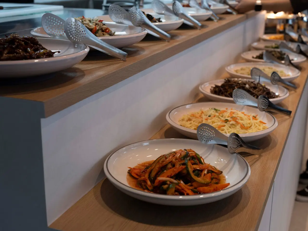 - 밑반찬·셀프바: 감자볶음, 시금치무침, 오이무침, 오징어젓, 고추장아찌, 느타리버섯볶음, 콩나물무침, 고사리볶음 등 반찬이 20가지 이상 셀프로 준비돼 있어 원하는 만큼 가져다 먹을 수 있어요.