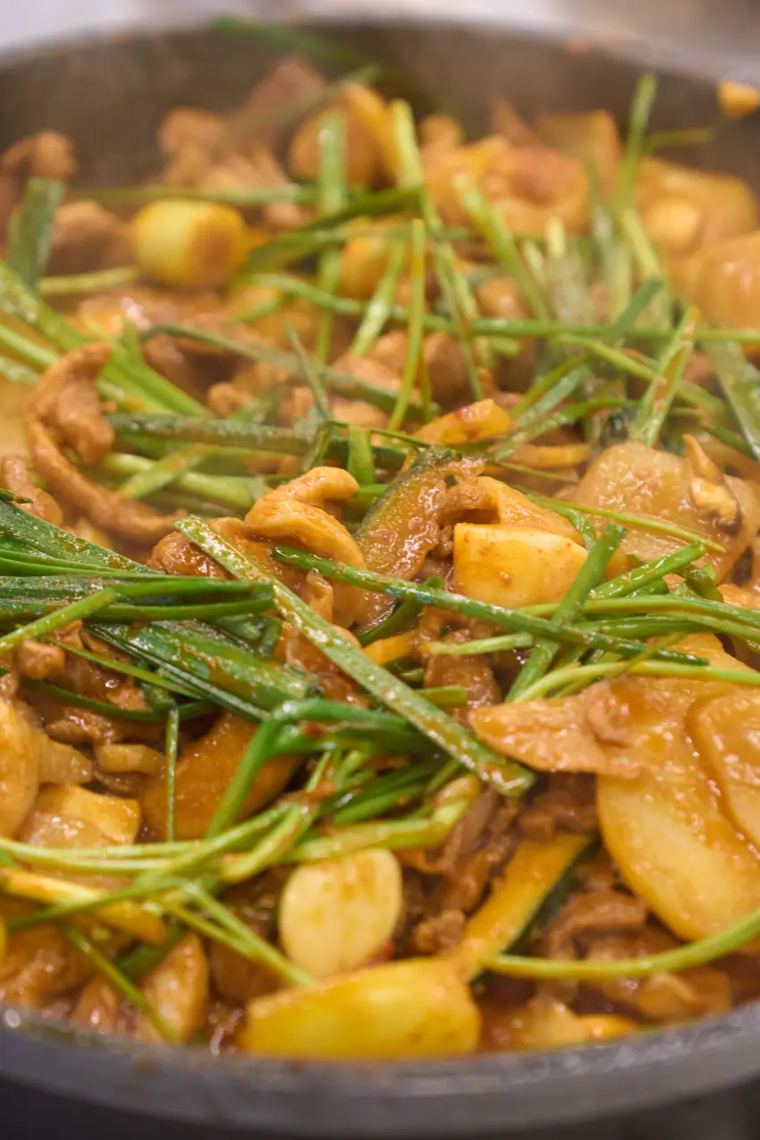 - 구성: 양파·버섯·부추·감자·떡사리 등을 듬뿍 넣어 볶아 주기 때문에 비주얼도 푸짐하고, 마지막에는 볶음밥이나 우동사리를 추가해 마무리하는 방식이 인기예요.