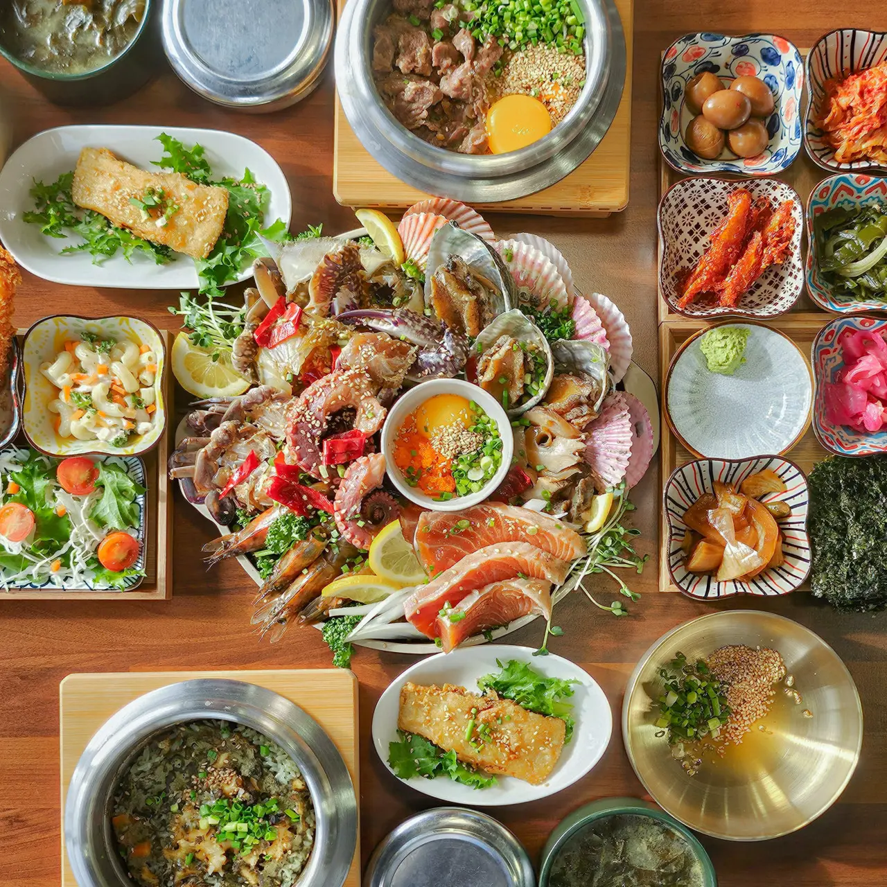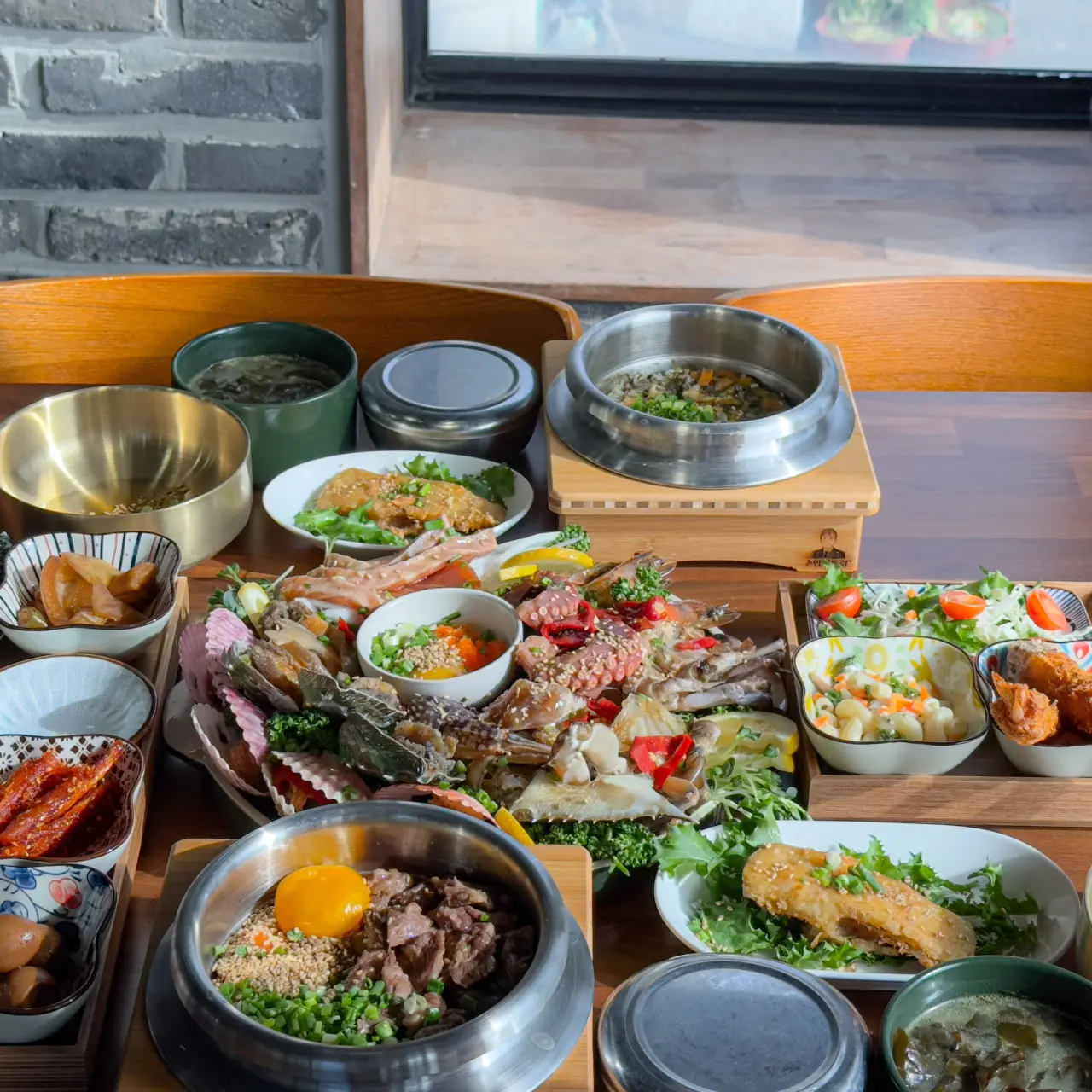 밑반찬 구성도 푸짐한 편이라, 가자미조림·전·각종 나물과 볶음류, 미역국까지 한 상 가득 차오르는 “밥도둑” 스타일 상차림이라는 후기가 많아요. 특히 모둠 해물장과 솥밥 조합은 한 점씩 올려 먹을 때 해산물 식감과 양념 맛이 밥알 사이사이에 스며들어서 “건강해지는 밥상 같다”는 평가도 있더라고요.