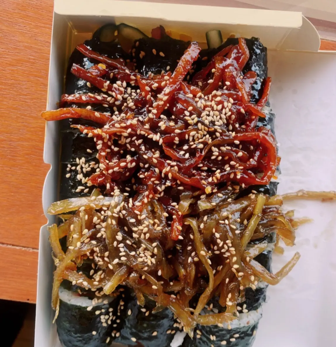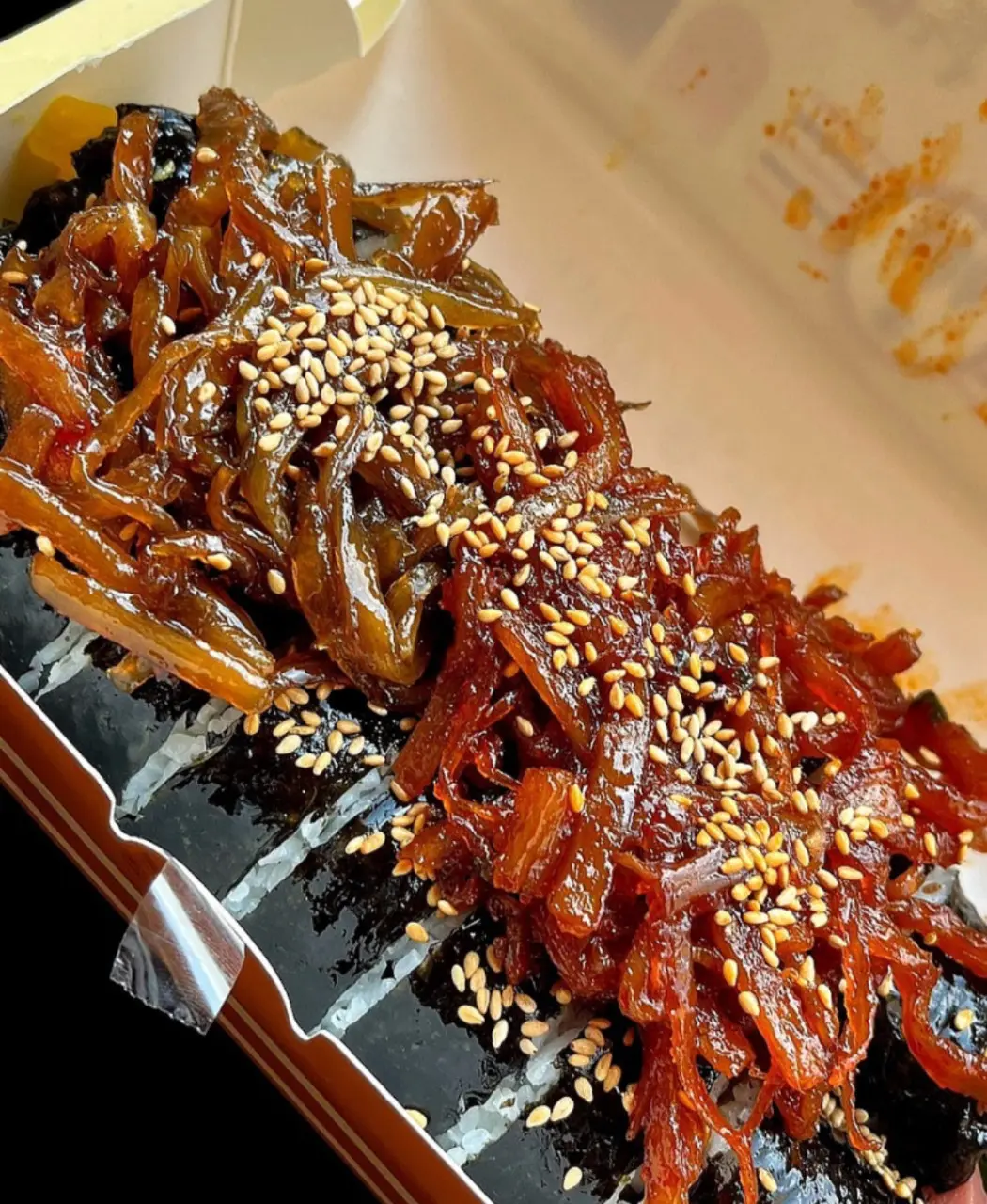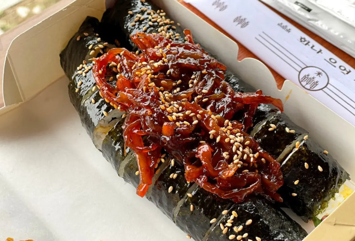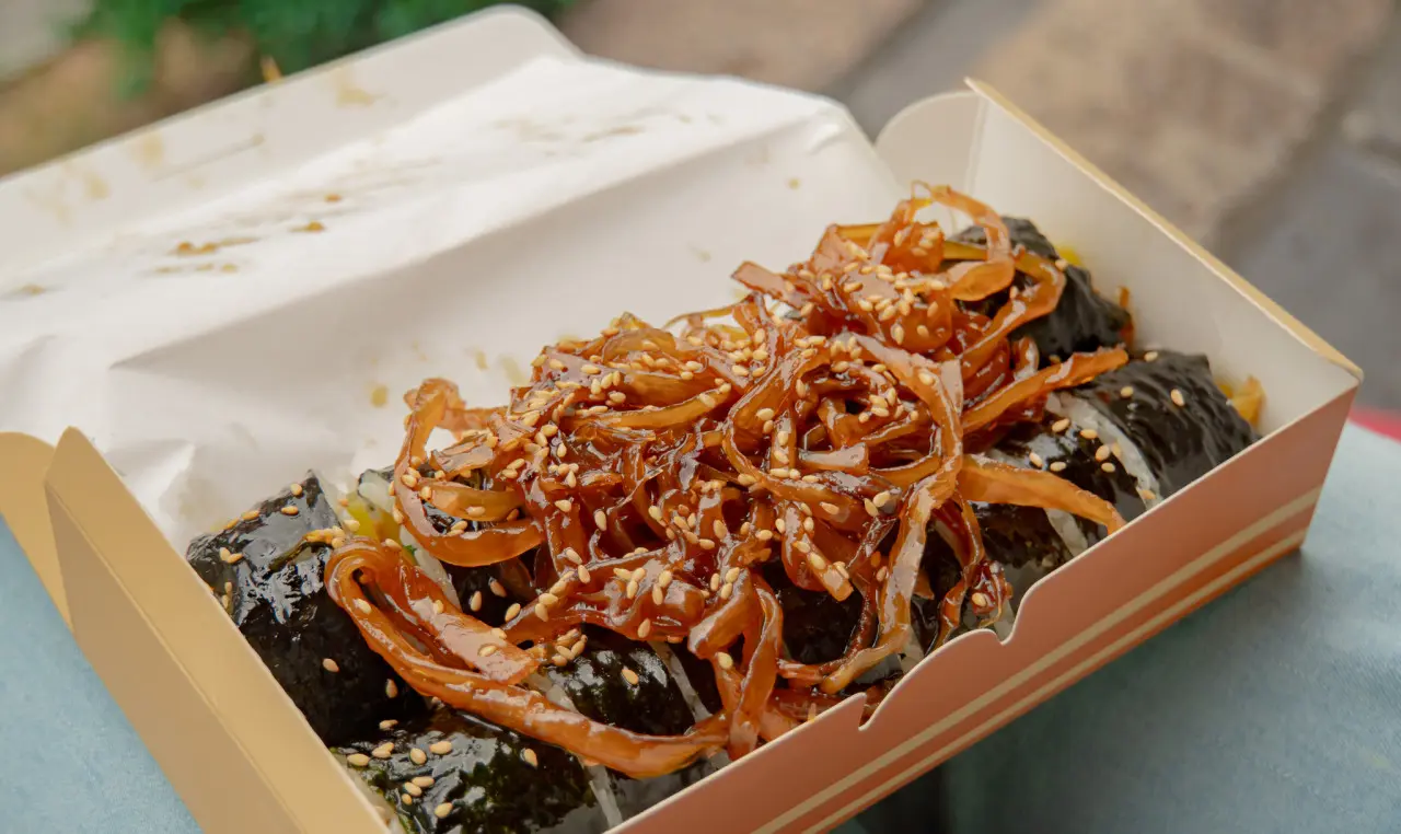 - 경주 특산 우엉 활용, 100% 쌀조청과 간장으로 정성껏 졸인 우엉조림이 김밥 위에 올라가는 시그니처 스타일이에요