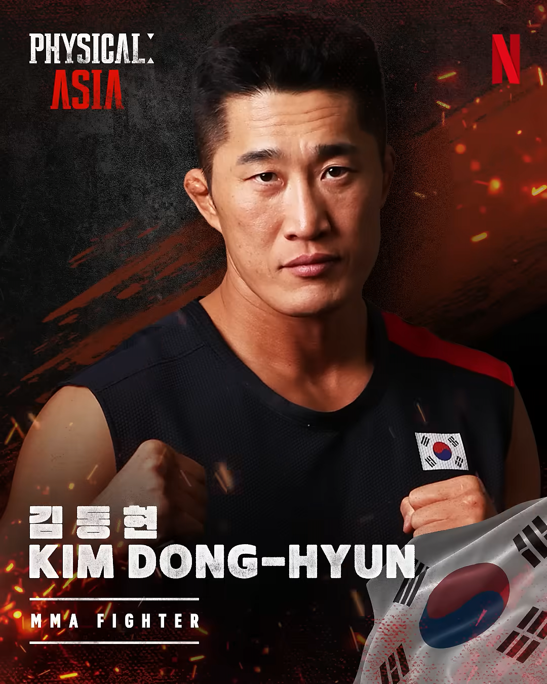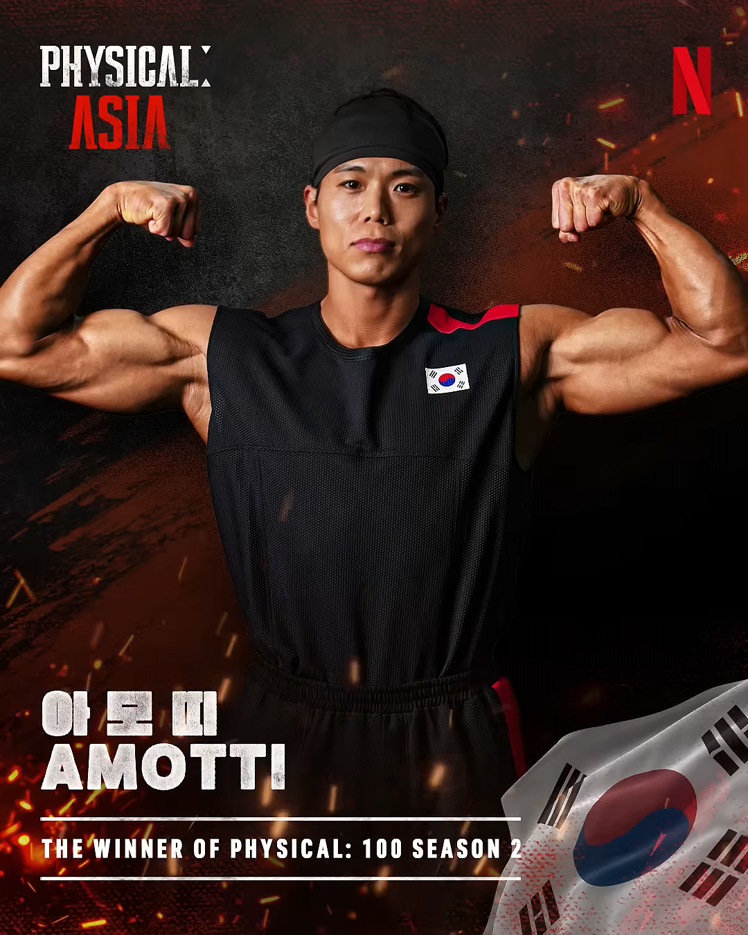 넷플릭스 오리지널 시리즈 '피지컬 아시아'의 한국팀은 UFC 레전드 김동현, 올림픽 금메달리스트 윤성빈, 피지컬 100 시즌2 우승자 아모띠(본명 김재홍), 씨름 천하장사 김민재, 전 국가대표 레슬러 장은실, 그리고 크로스핏 선수 최승연으로 구성되어 있어요
