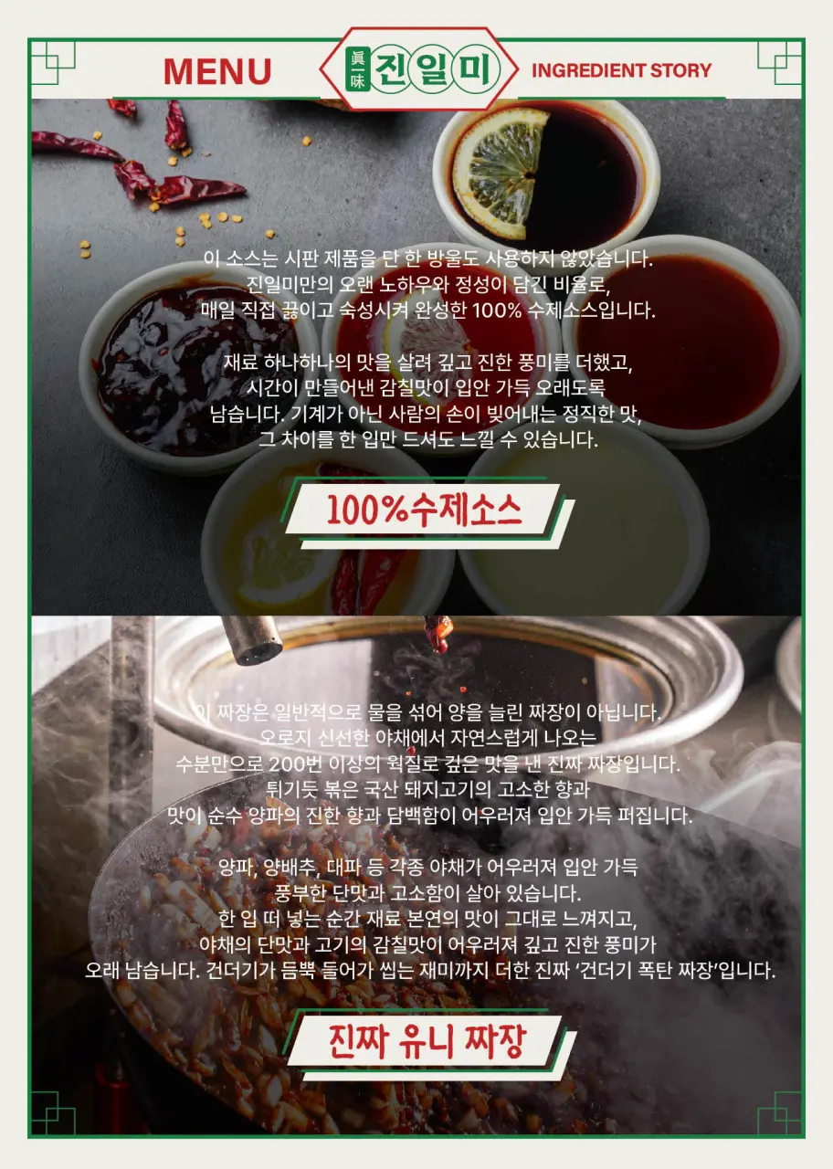 - 불향을 살린 간짜장 소스가 대표 메뉴 중 하나예요.
