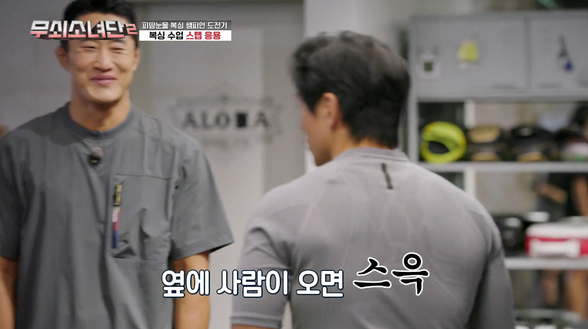 이 두 가지 기본 스텝만 매끄럽게 익혀도 복싱에서 훨씬 민첩해질 수 있답니다. 4화에서는 김지훈 트레이너가 멤버들에게 이 동작들을 직접 시범 보이며 꼼꼼하게 가르쳐 주는 장면이 연출됐어요.