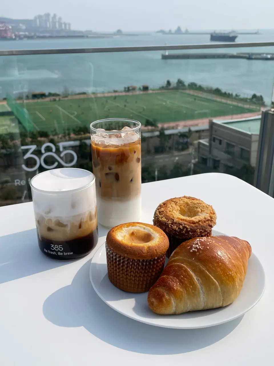 카페 385가 2TV 생생정보 SNS 화제 영상 코너에 소개될 만큼 주목받은 이유는 독특한 시그니처 베이커리와 뷰 덕분이에요.