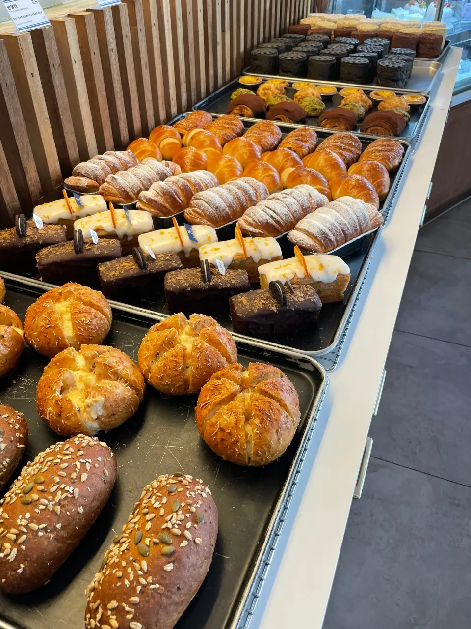 베이커리는 전문 파티셰가 매일 직접 만들고, 당일 생산·당일 판매 원칙이라 신선한 빵을 맛볼 수 있다는 점이 큰 장점이에요.