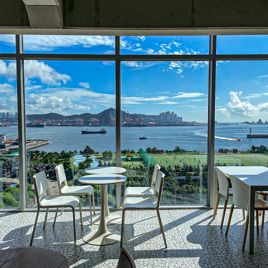 통창으로 영도 바다와 배들이 보이는 탁 트인 뷰가 이 카페의 가장 큰 강점 중 하나라, 날씨 좋은 날엔 특히 인기가 많다고 해요.