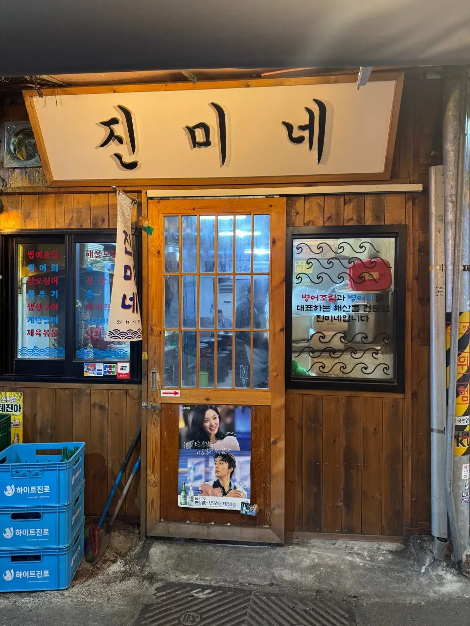 - 4호선 충무로역 8번 출구 → 뒤쪽 인현시장 방향으로 직진 후 시장 입구 진입 → 먹거리 골목을 조금만 내려가면 왼편에 ‘진미네’ 간판이 보여요.