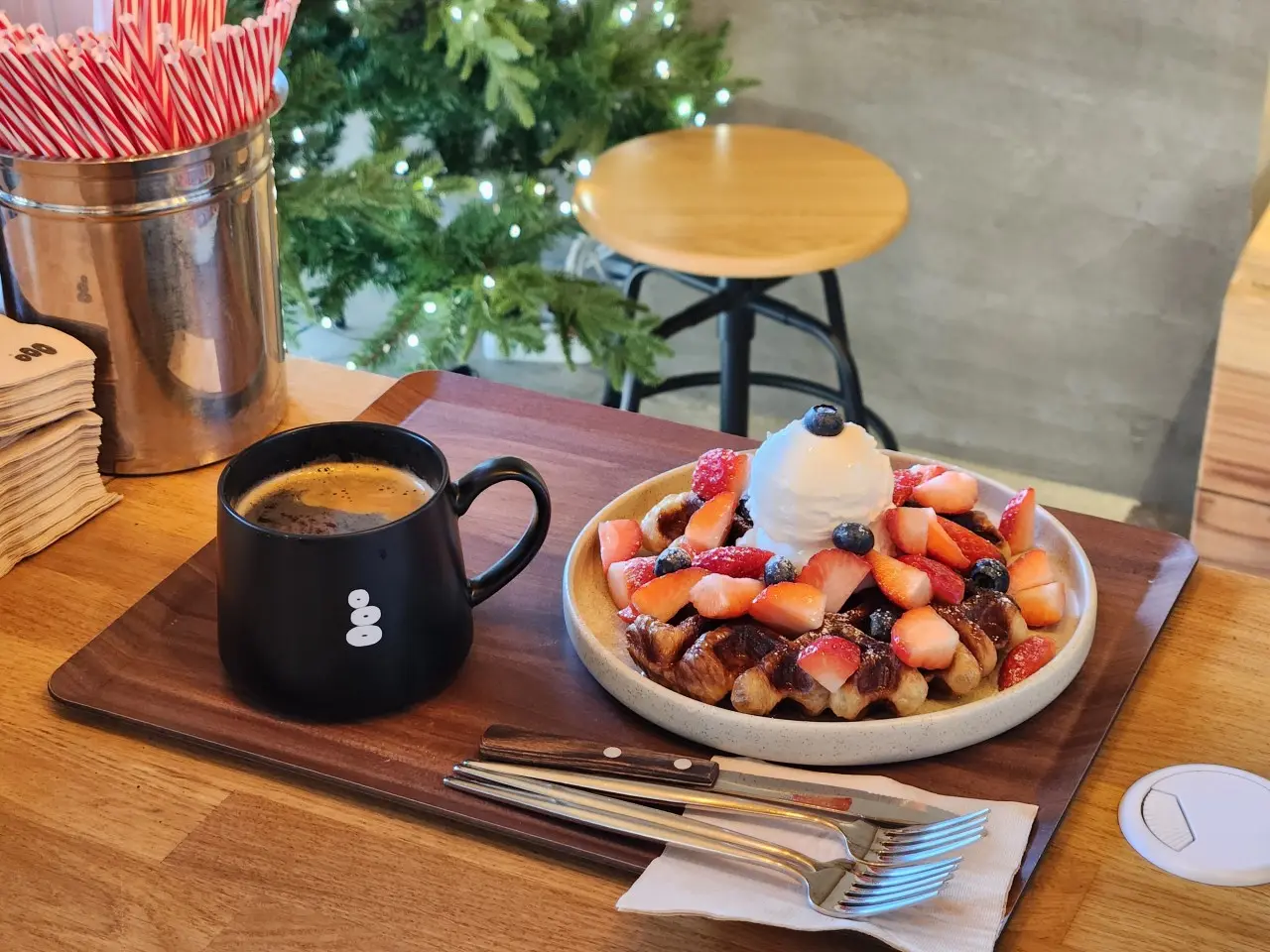 양재천 카페거리 초입에 위치해서 산책하다가 가볍게 들르기 좋고, 창가·테라스 자리에서는 바로 앞 양재천 풍경을 감상할 수 있어요.