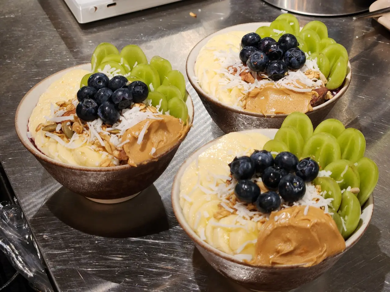 블루베리·바나나·청포도 등 신선한 과일과 그래놀라, 견과류를 아낌없이 올려 비주얼부터 남다르다는 리뷰가 많아요.