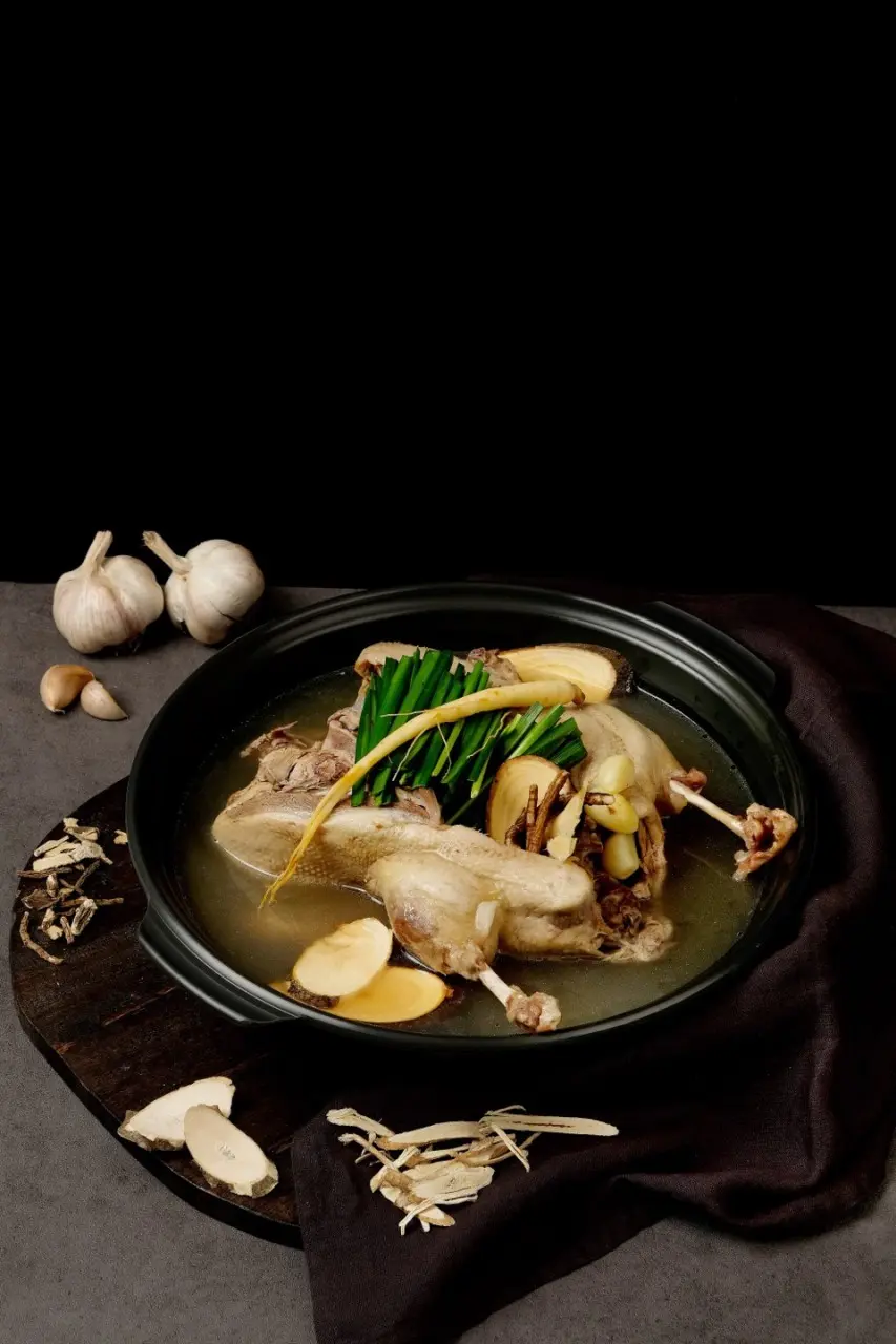 능이버섯과 오리를 함께 푹 고아낸 보양 메뉴로, 1시간 전 예약이 필수예요.