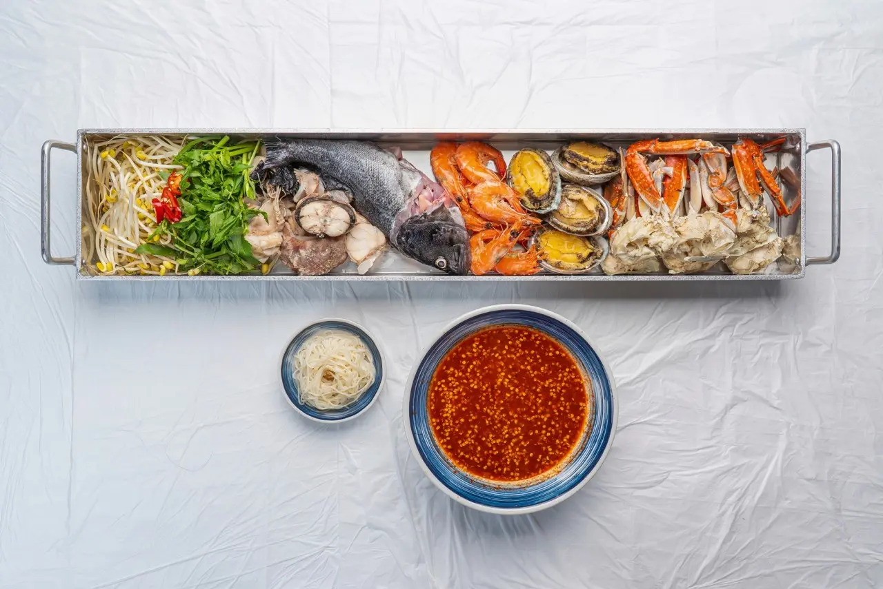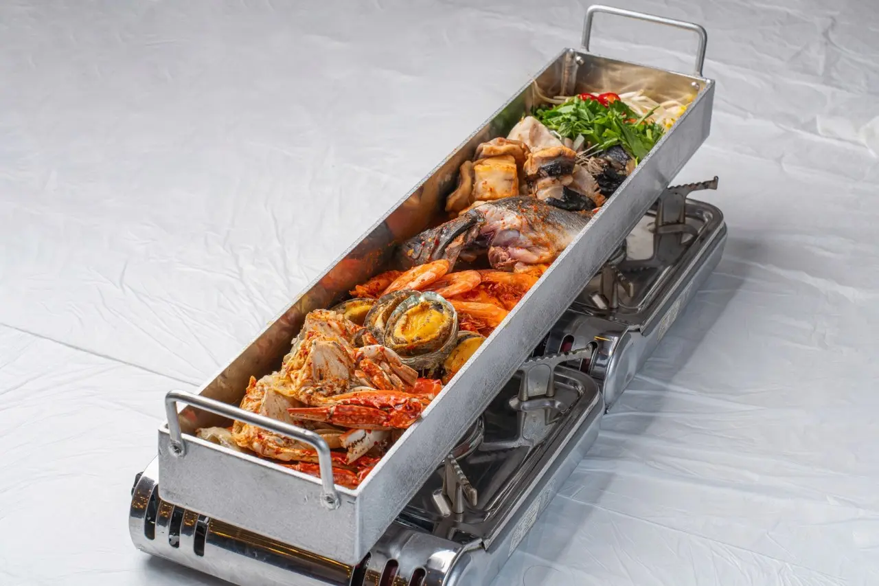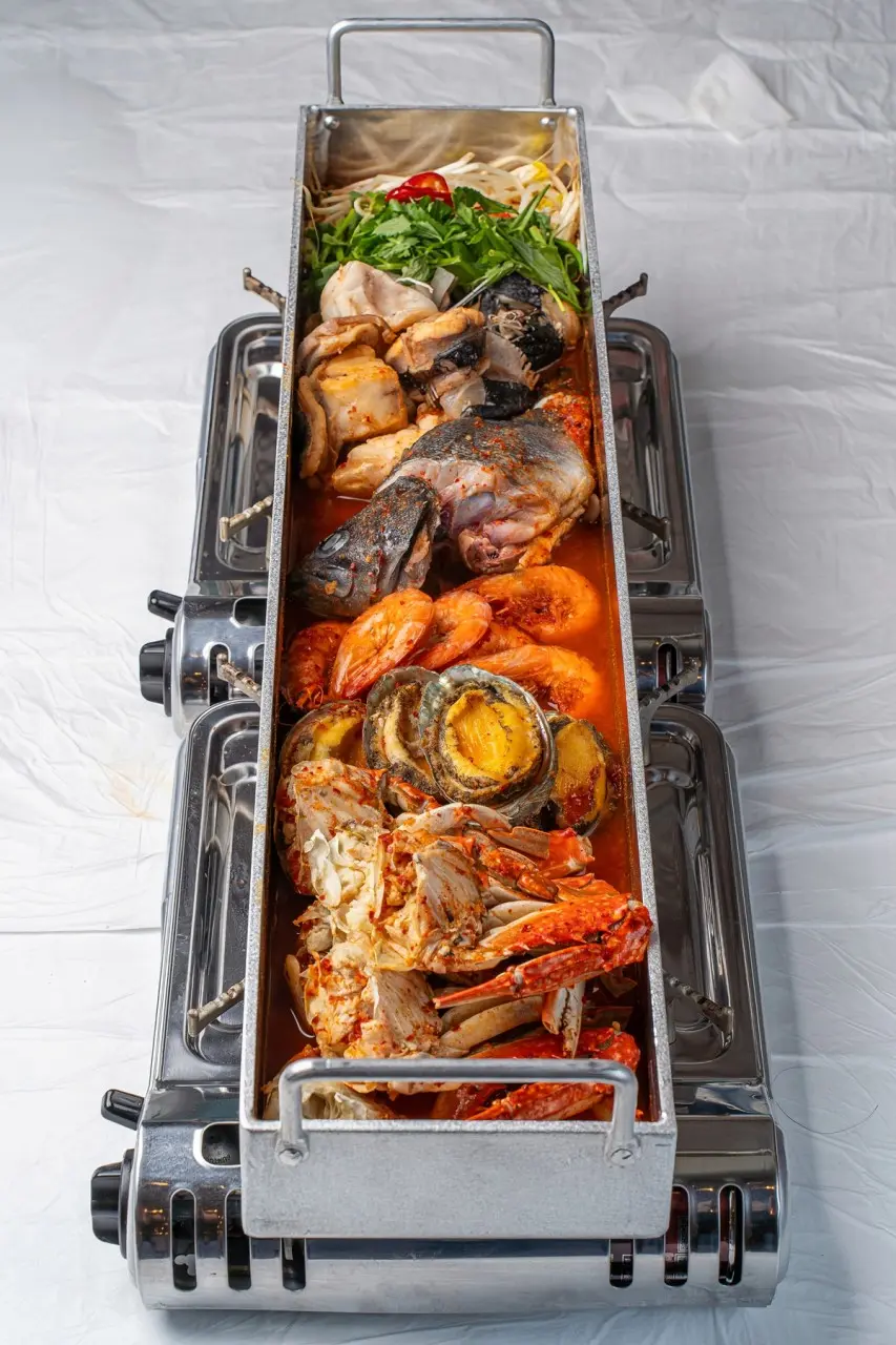 - 특수 제작한 70cm 용기에 통우럭, 각종 조개, 오징어, 새우 등을 가득 담아 나오는 대형 메뉴예요.