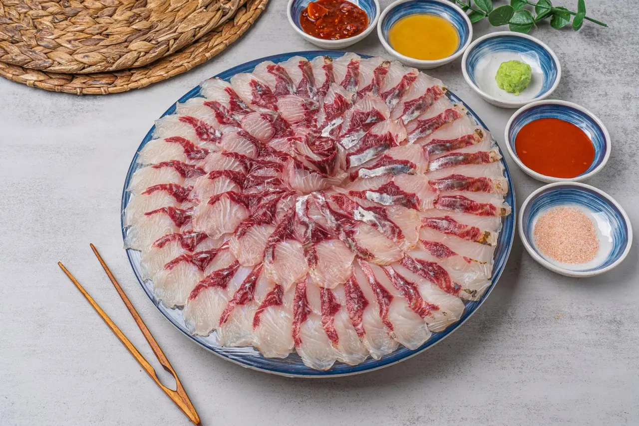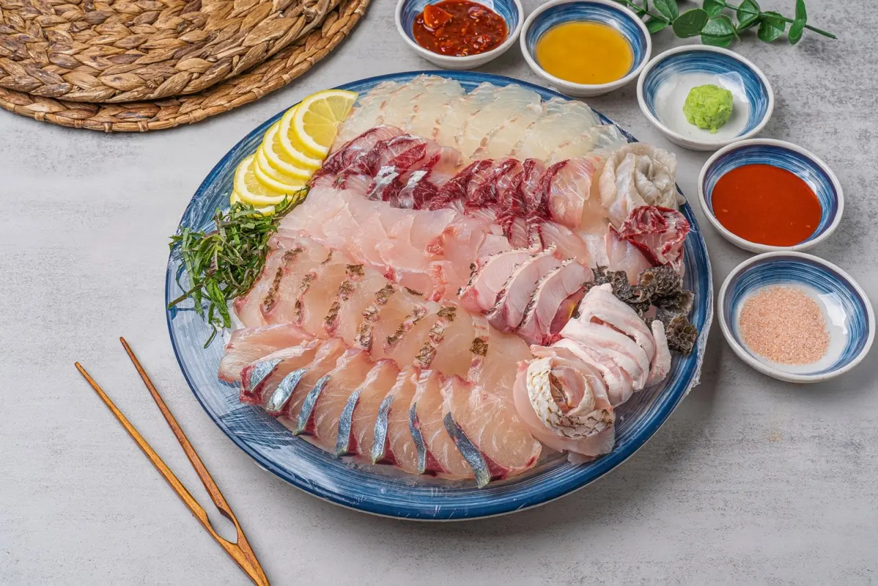 - 광어, 도다리, 연어, 시마아지, 민어 등 여러 종류 중에서 원하는 구성으로 선택하는 숙성 모둠회가 인기라고 해요.