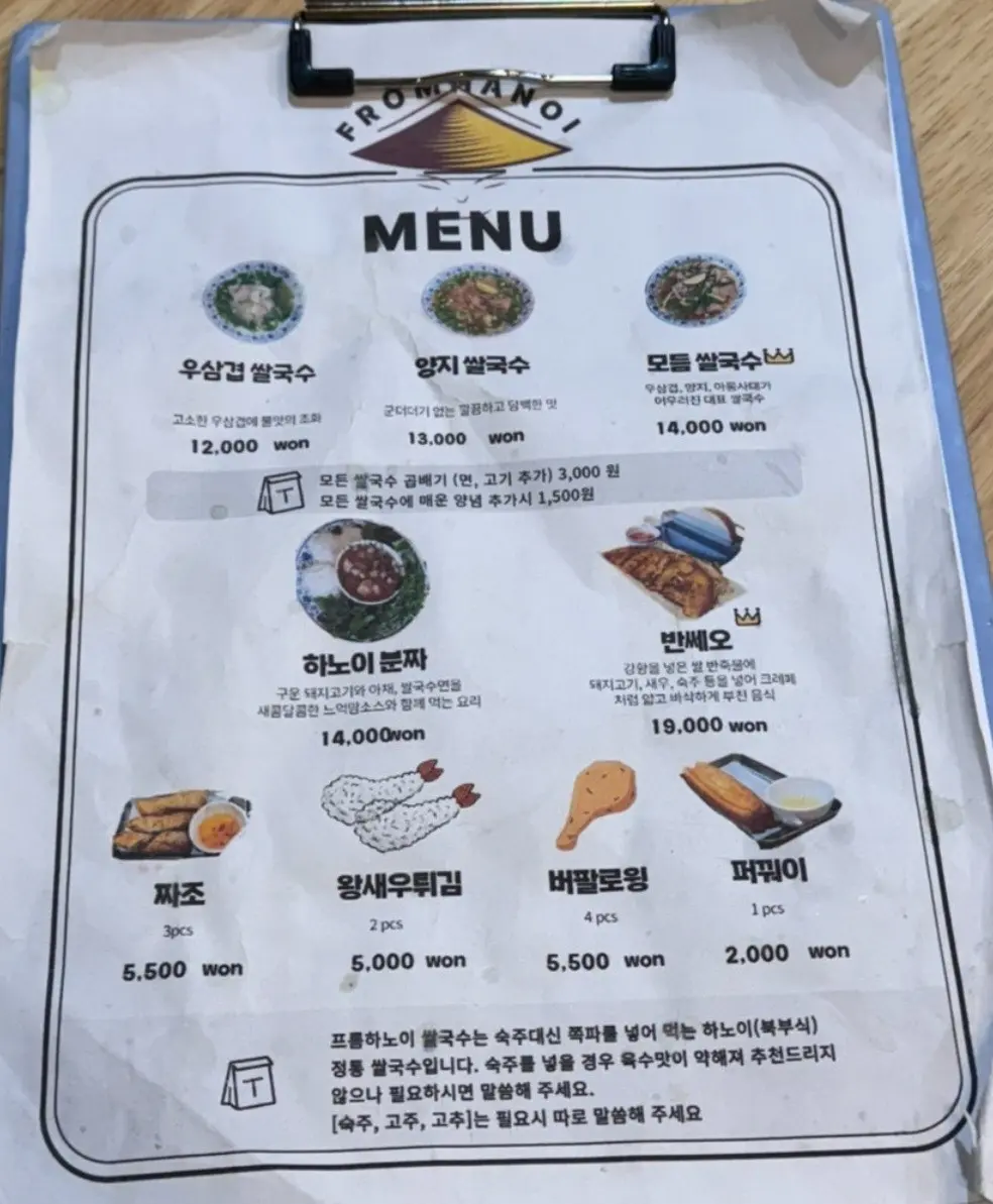 아래는 2TV 생생정보 방송 및 관련 정보 페이지 기준으로 정리한 대표 쌀국수 메뉴와 가격이에요. 실제 방문 시에는 원가·계절 등에 따라 변동될 수 있으니, 참고용으로 봐주시고 방문 전에 한 번 더 확인해 주세요.