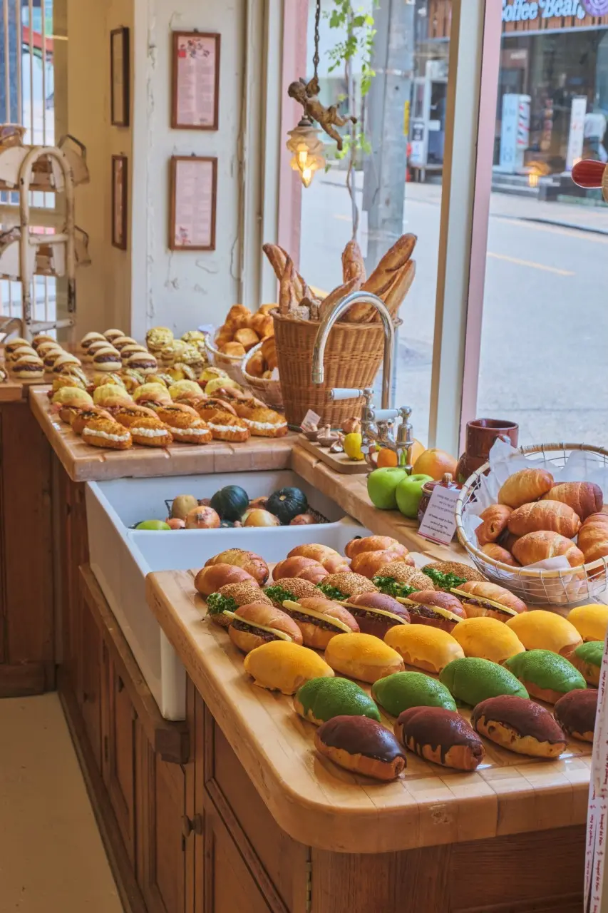 여기에 한 조각이 통째로 올라가는 티라미수 라떼, 말차 티라미수 라떼, 딸기 티라미수 라떼까지 있어서 “빵+디저트+커피”를 한 번에 해결할 수 있는 구성이 인상적이에요. 특히 말차 티라미수 라떼는 진한 말차 풍미와 푸짐한 토핑 덕분에 외국인 여행객에게도 꼭 가봐야 할 카페로 소개되고 있어요.