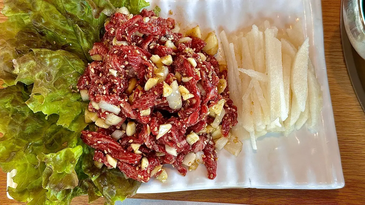 • 육회: 앞다리, 우둔, 볼기살 등 기름기 적으면서도 부드러운 부위로만 버무려서 고기 본연의 단맛이 살아 있어요.