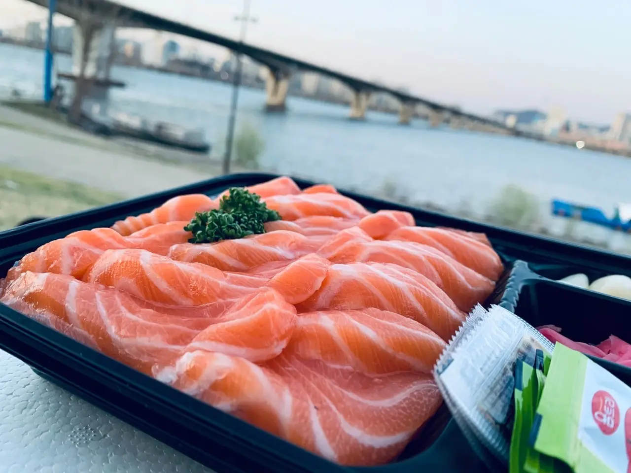 회케이크 수령 시 얼음물, 락교, 초생강, 간장, 생와사비까지 함께 들어 있어서 바로 드실 수 있어요.