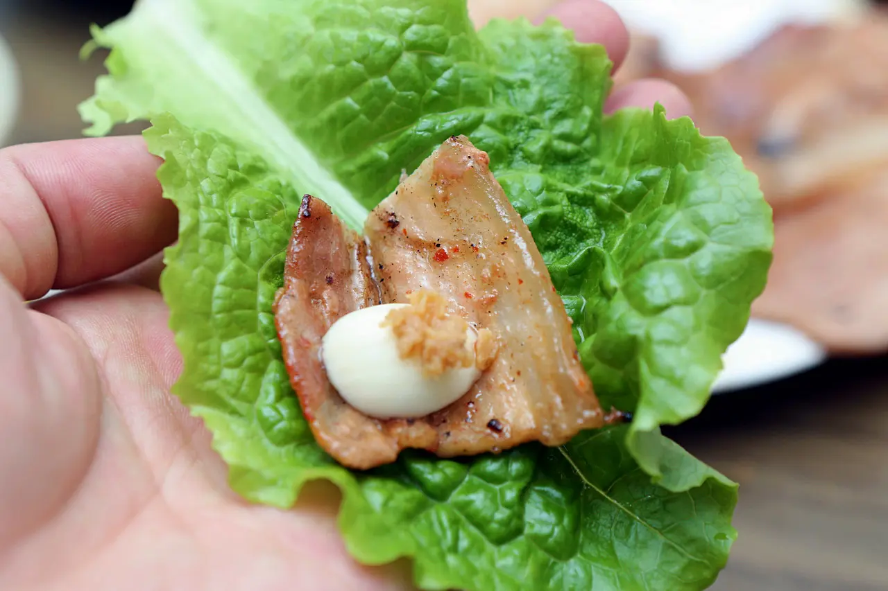 기본 찬으로는 묵은지, 된장 시래깃국, 토하젓, 각종 쌈 채소가 함께 나오는데, 연탄불고기와 같이 싸 먹으면 고기의 고소함이 훨씬 살아나요. 특히 토하젓과 묵은지는 따로 찾는 사람이 많을 정도로 인기가 좋아서, 반찬만으로도 밥 한 그릇 뚝딱 할 수 있는 구성이라고 해요.