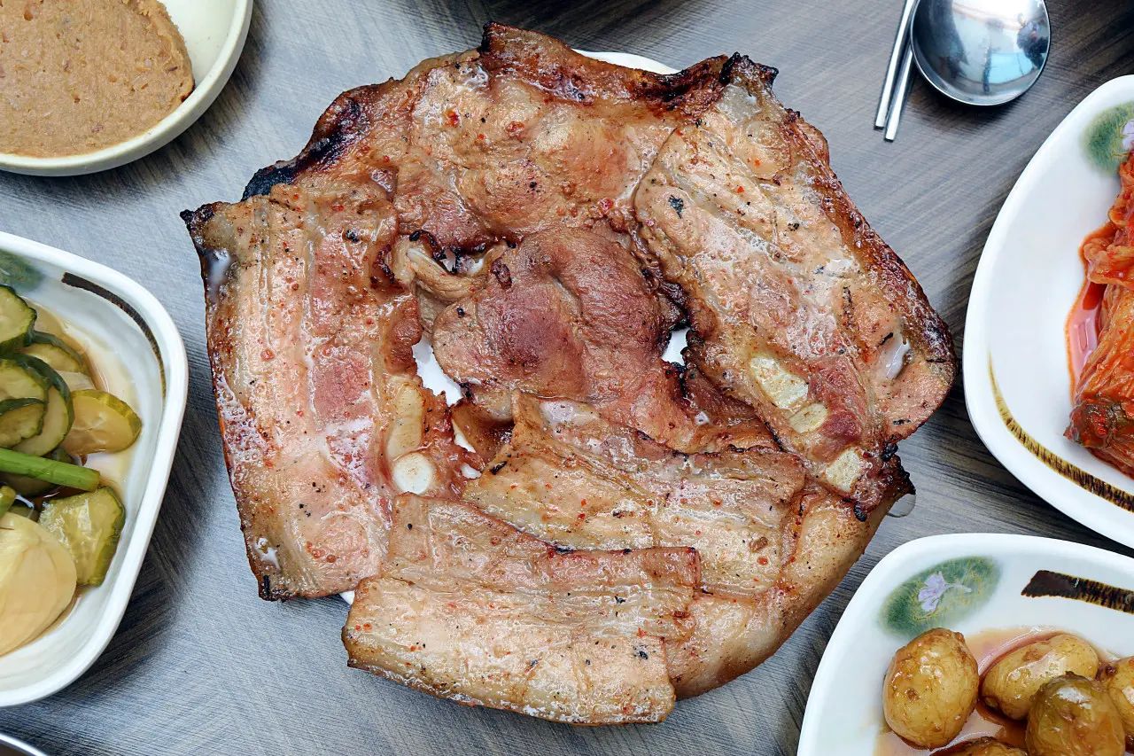 연탄 위에서 370도 안팎의 강한 화력으로 구워내기 때문에 겉은 살짝 크리스피하면서도 속은 촉촉하게 육즙이 살아 있는 게 가장 큰 매력이에요. 사장님이 수십 년간 맨손으로 고기를 뒤집으며 구워온 노하우 덕분에, 연탄불 특유의 깊은 불향이 고기 전체에 고르게 배어 있는 집이랍니다.