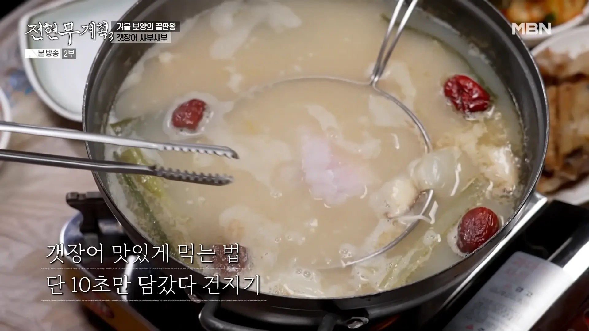 전현무계획3에서 여경래 셰프가 국물 맛과 갯장어 식감, 부추와의 조화에 대해 칭찬을 건넬 정도로 완성도가 높은 샤부샤부 집으로 소개됐어요. 갯장어를 몇 초만 살짝 데쳐 먹으면 탱탱하면서도 담백한 맛이 살아나 “내년 이맘때쯤 또 생각날 맛”이라는 코멘트가 나왔다고 하니, 장어를 처음 드시는 분도 도전해볼 만해요.