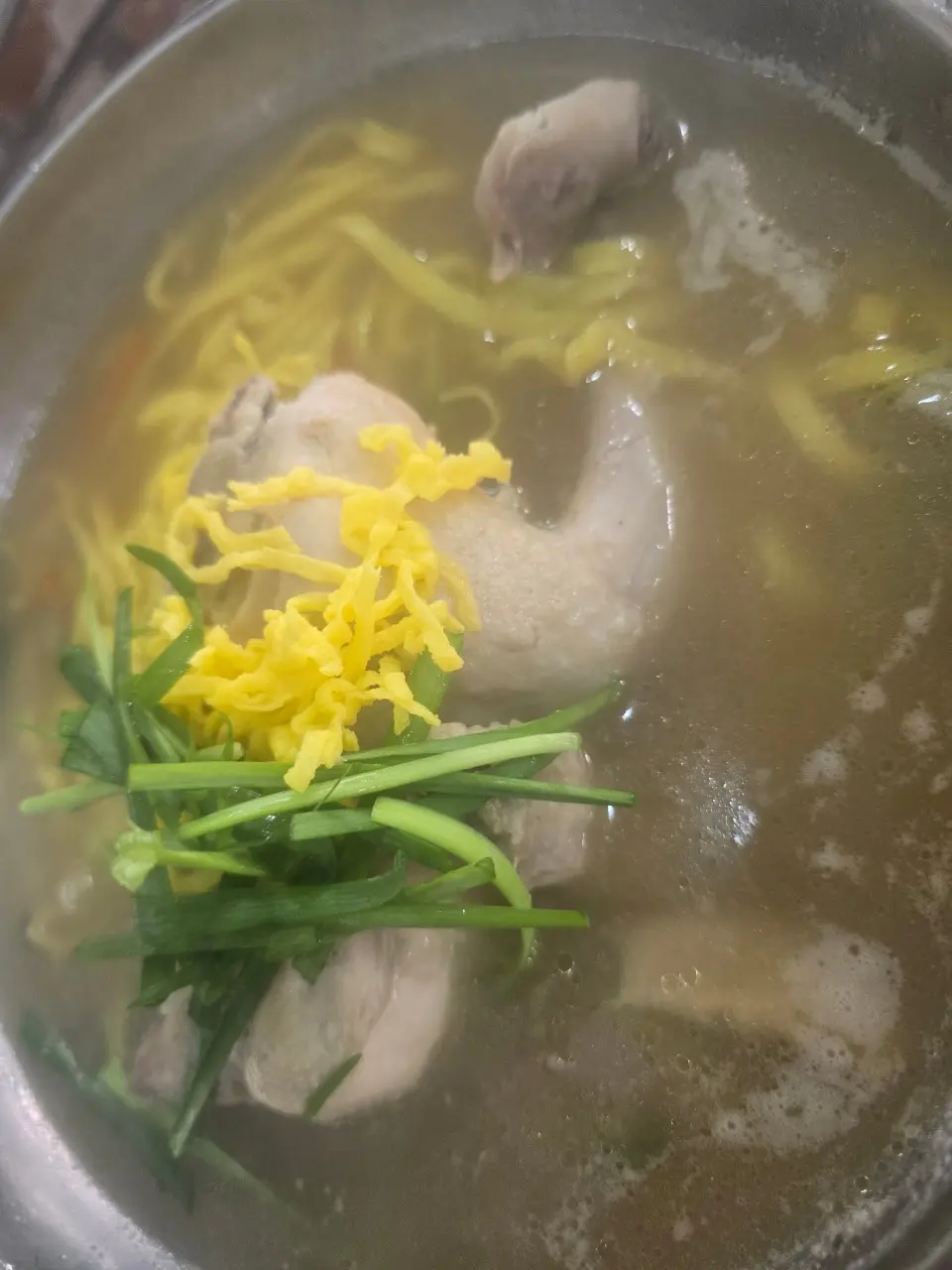 - 닭 한 마리 통째로, 칼국수 한 그릇에 닭이 통째로 들어가 국물이 깊고 진해요
