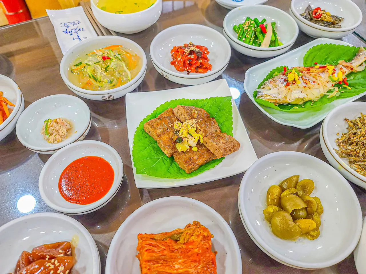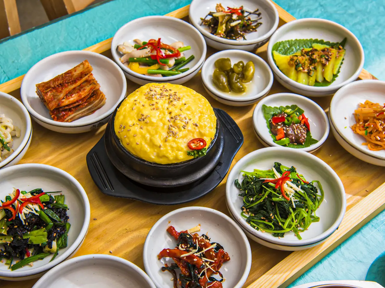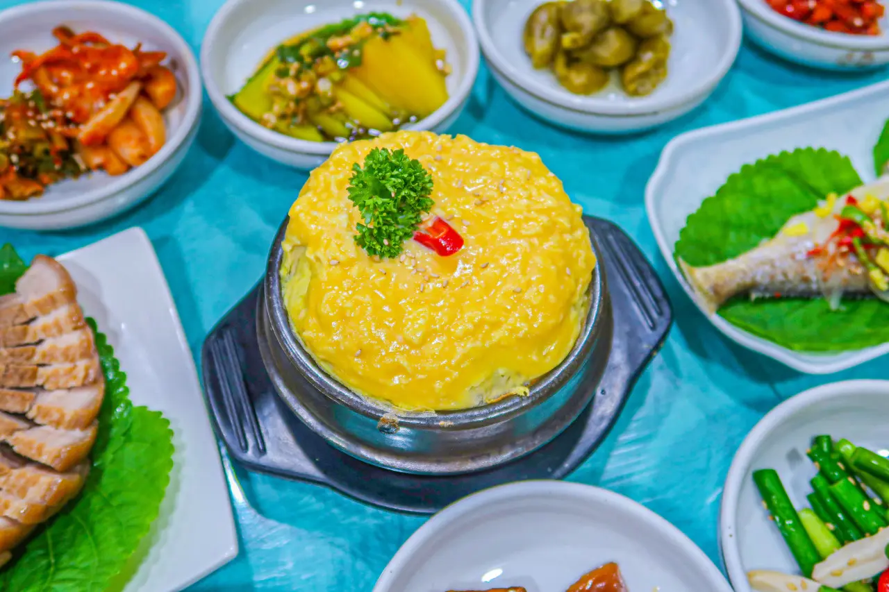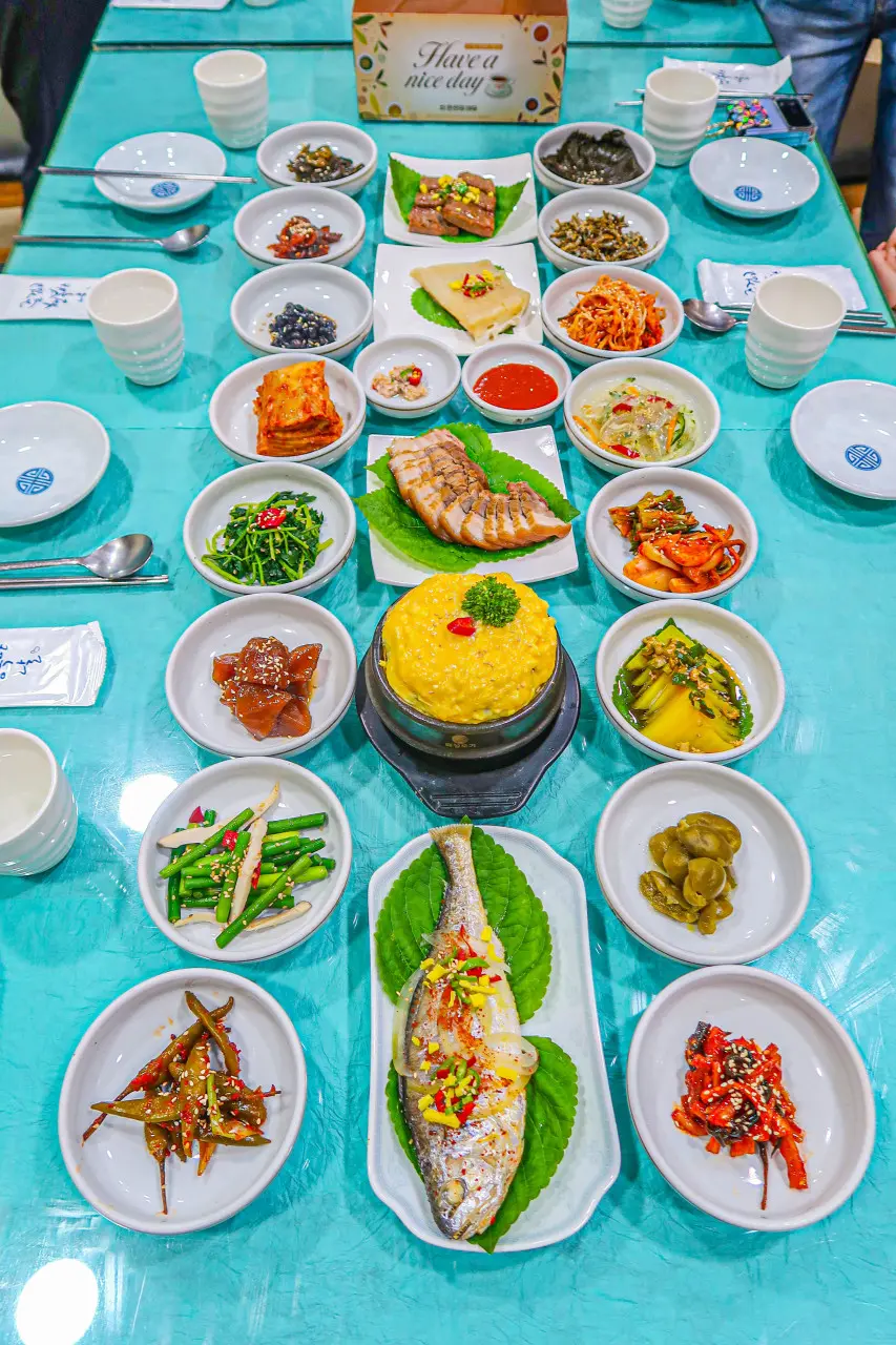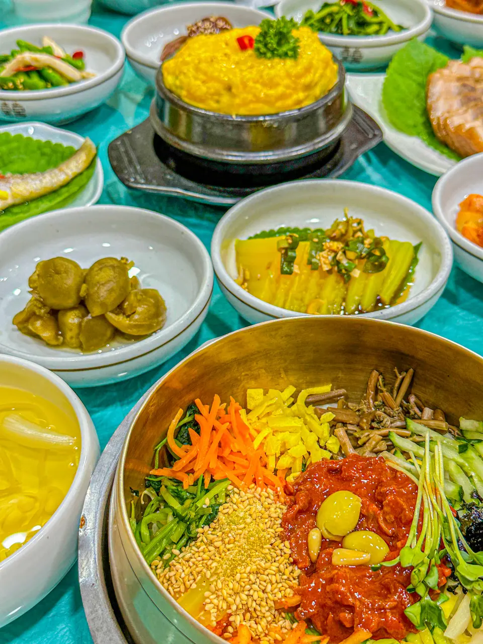 놋그릇에 담긴 밥은 가스불에 미리 따뜻하게 데워서 내오는데, 밥을 비빌 때부터 고소한 향이 확 올라와서 식욕을 제대로 자극해요. 상차림으로 나오는 반찬은 계란찜을 포함해 여러 가지가 정갈하게 깔려서 ‘한 상 제대로 받았다’는 느낌이 들 정도로 풍성한 편이에요.