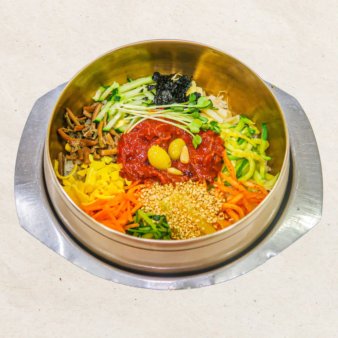 | 전주비빔밥 | 육회 없이도 전주 나물과 고추장의 조합이 돋보이는 기본 비빔밥 |
