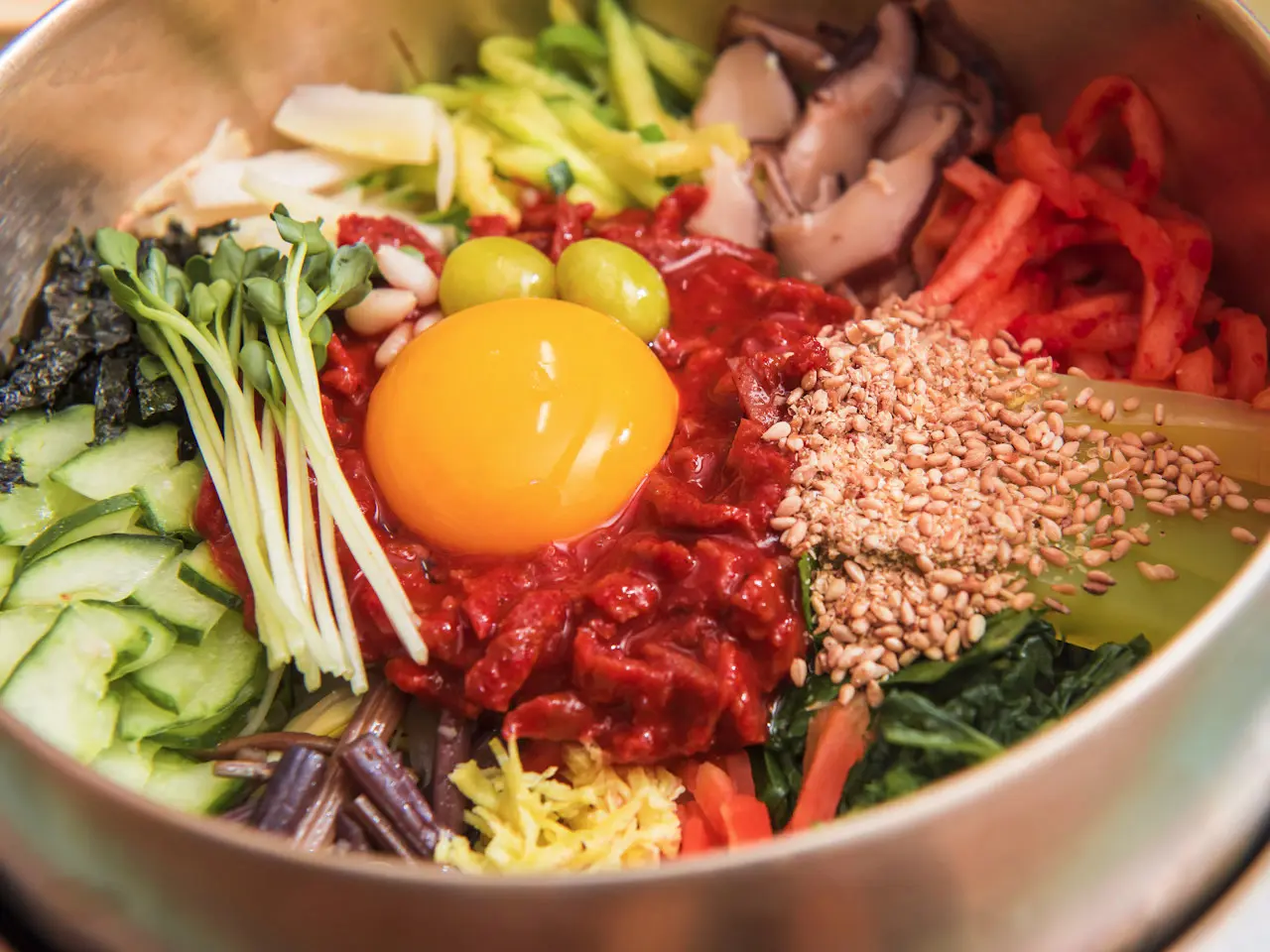 | 전주비빔밥 | 육회 없이도 전주 나물과 고추장의 조합이 돋보이는 기본 비빔밥 |