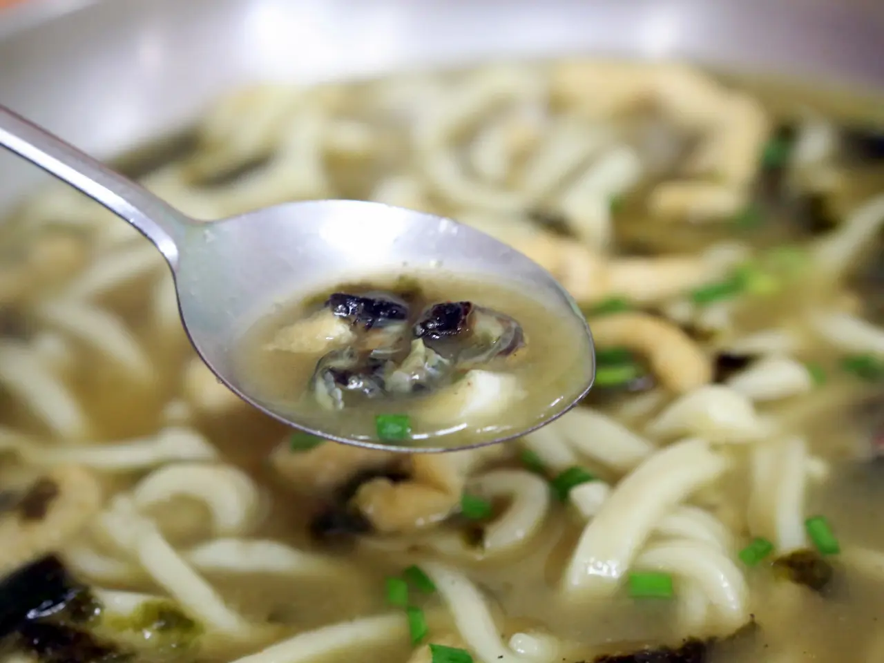 칼국수를 한 입 먹으면 먼저 고소하고 시원한 국물이 입안 가득 퍼지고, 뒤이어 바다 향이 은은하게 올라오는 느낌이에요.