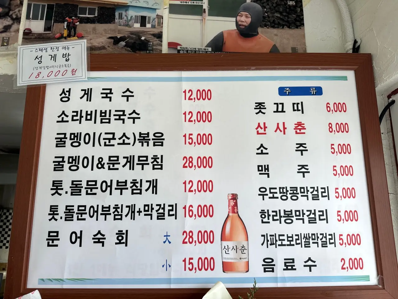 평대성게국수 주요 메뉴 안내