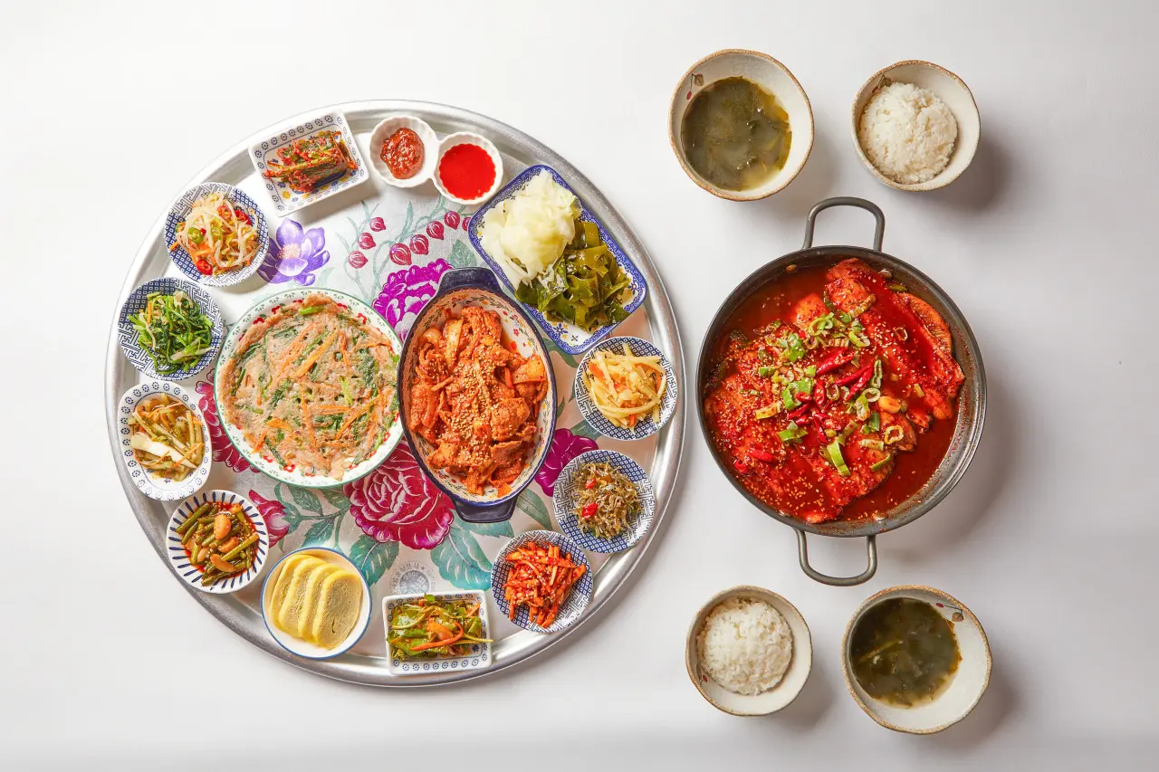 - 내부는 테이블 좌석이 넓게 배치되어 있고, 한쪽에 셀프바가 있어서 밥·국·반찬을 자유롭게 리필할 수 있어요.