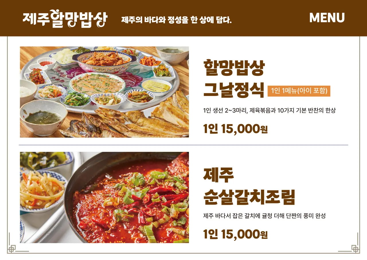 - 유튜브: https://www.youtube.com/@제주할망밥상 (매장 소개, 조업·요리 과정 등 영상 콘텐츠)