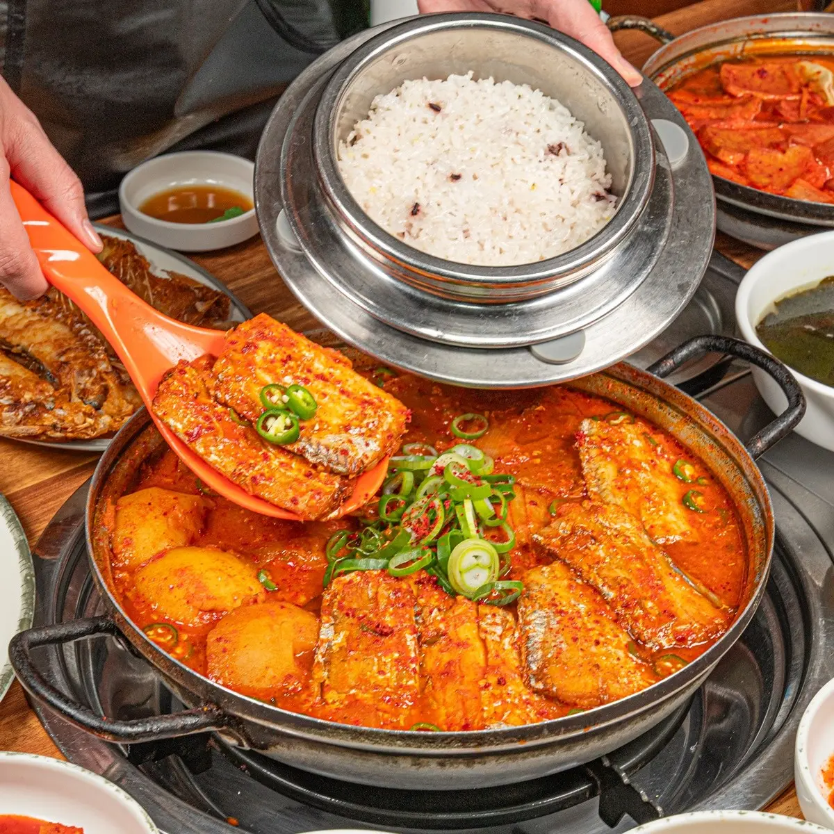 슬기네식당의 가장 큰 특징은 국내 제주산 갈치만 사용해 두툼하고 감칠맛 나는 갈치조림을 선보인다는 점이에요. 갈치조림에는 무·감자·대파가 넉넉히 들어가 국물이 자작하면서도 진하게 우러나 “밥도둑”이라는 표현이 자연스럽게 나오는 맛이라는 평이 많답니다.