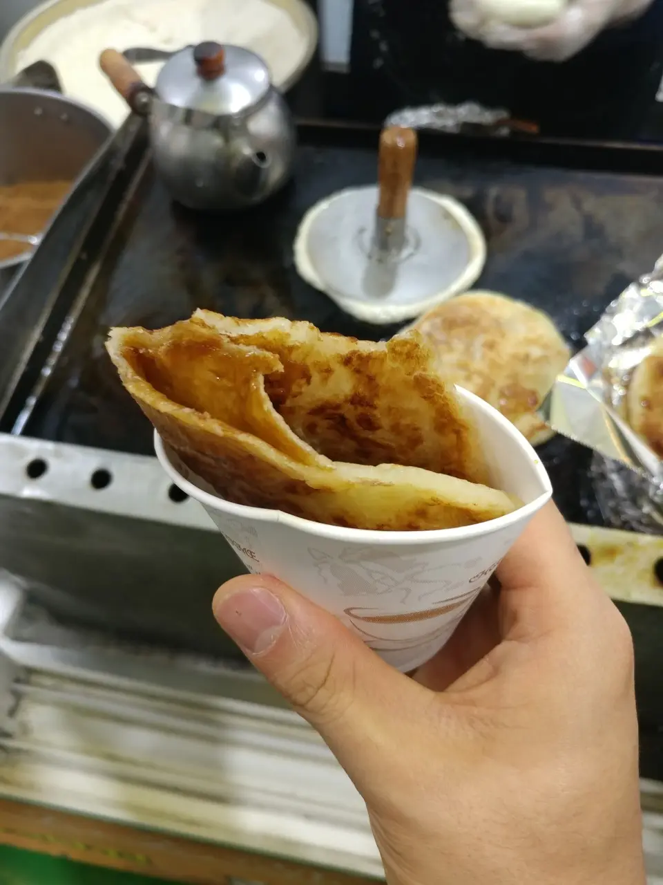 - 각종 야채 소를 넣어 만든 이 집의 대표 호떡이에요