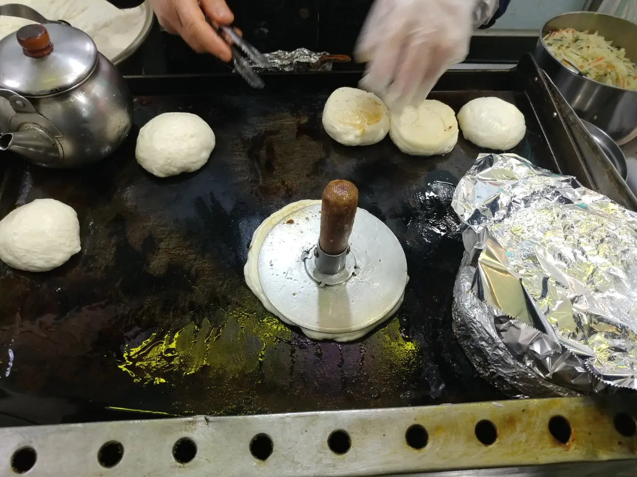 • 각종 야채 소를 넣어 만든 이 집의 대표 호떡이에요