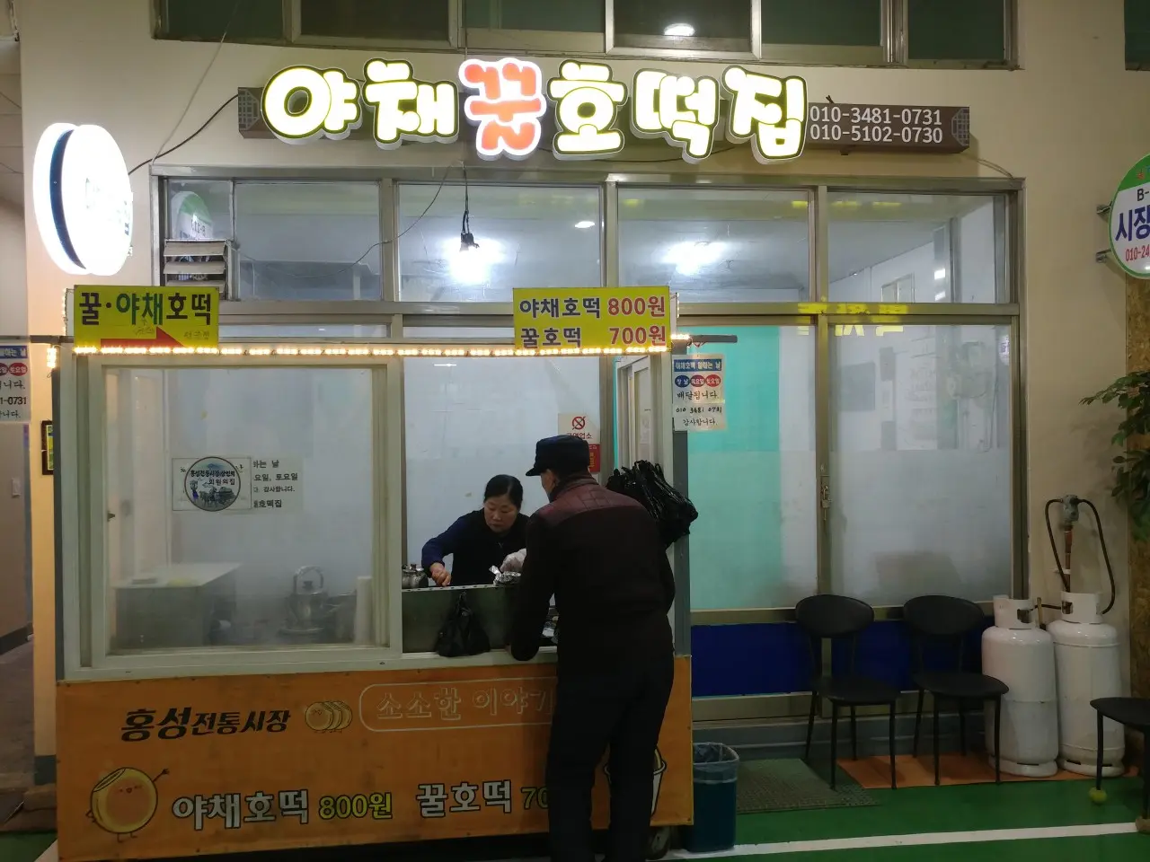 홍성야채호떡은 충남 홍성군 홍성읍 의사로43번길, 홍성전통시장(큰시장) 안에 위치한 호떡 전문점이에요. 방송에서는 ‘야채호떡집’으로 소개되었어요.